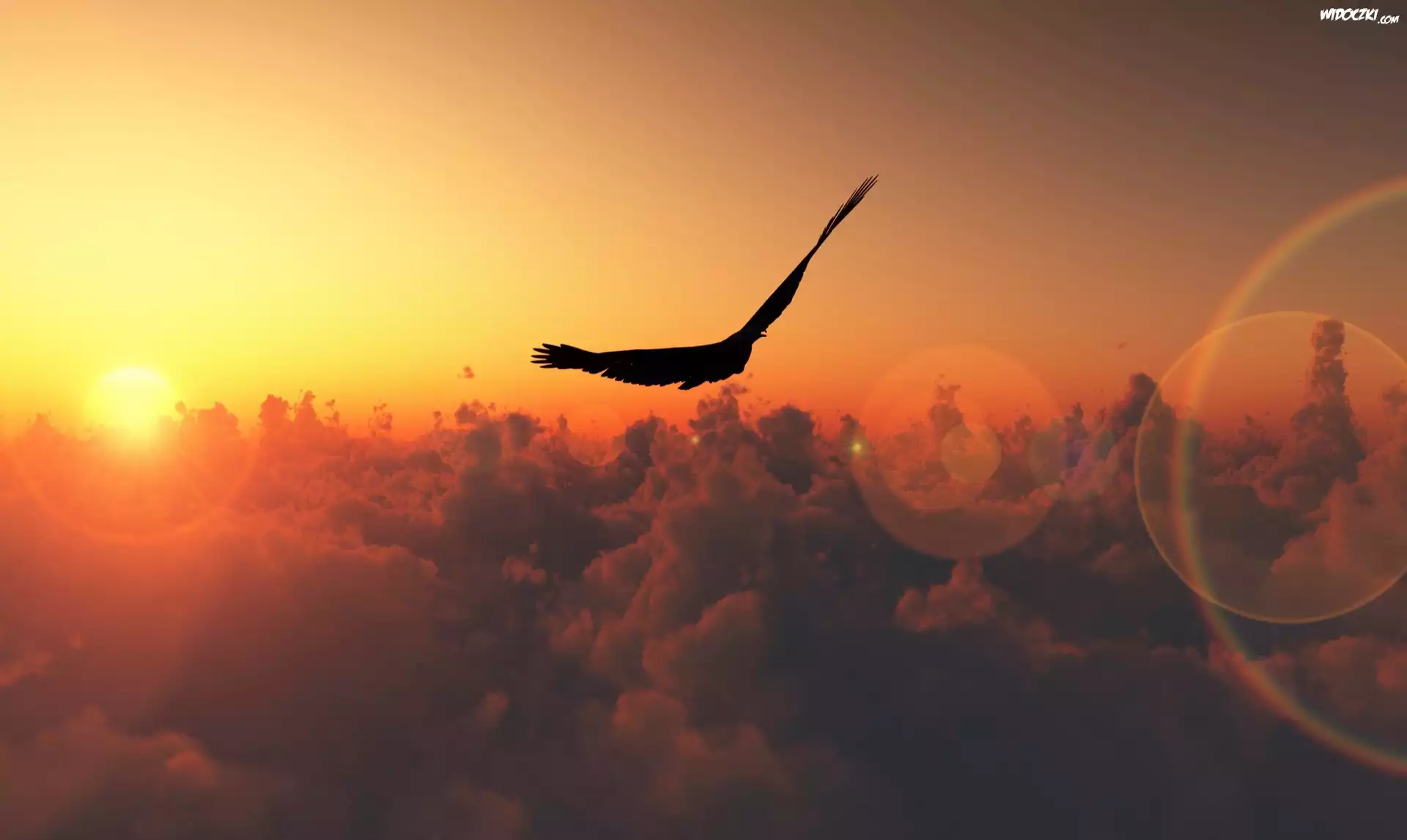 Zdjęcia, Ptak, Chmury, Zachód, Słońca