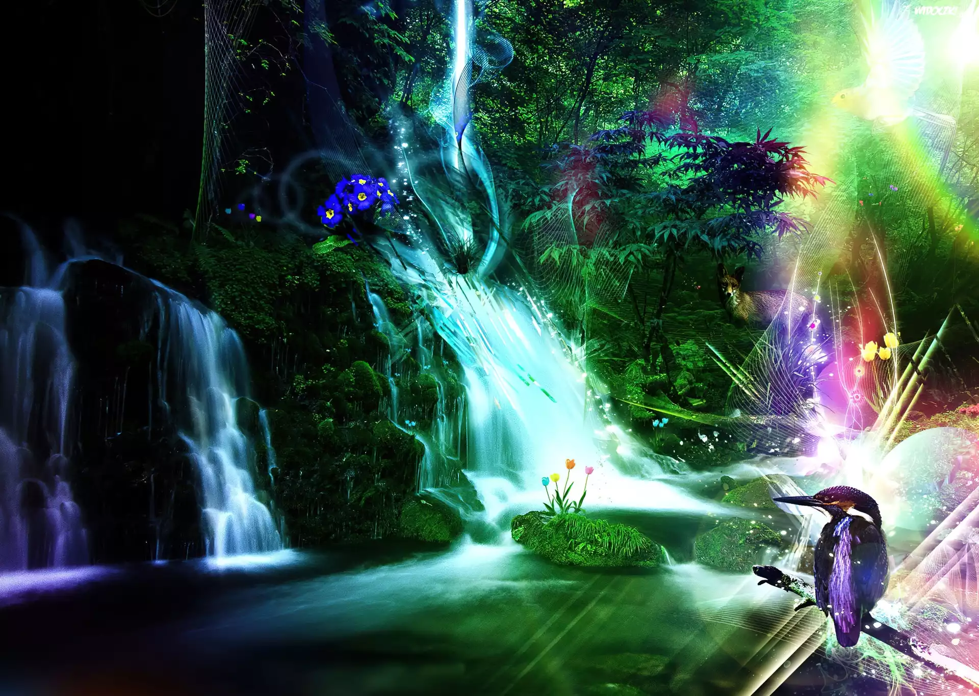 Zdjęcia, Wodospady, Ptaszek, Przyroda