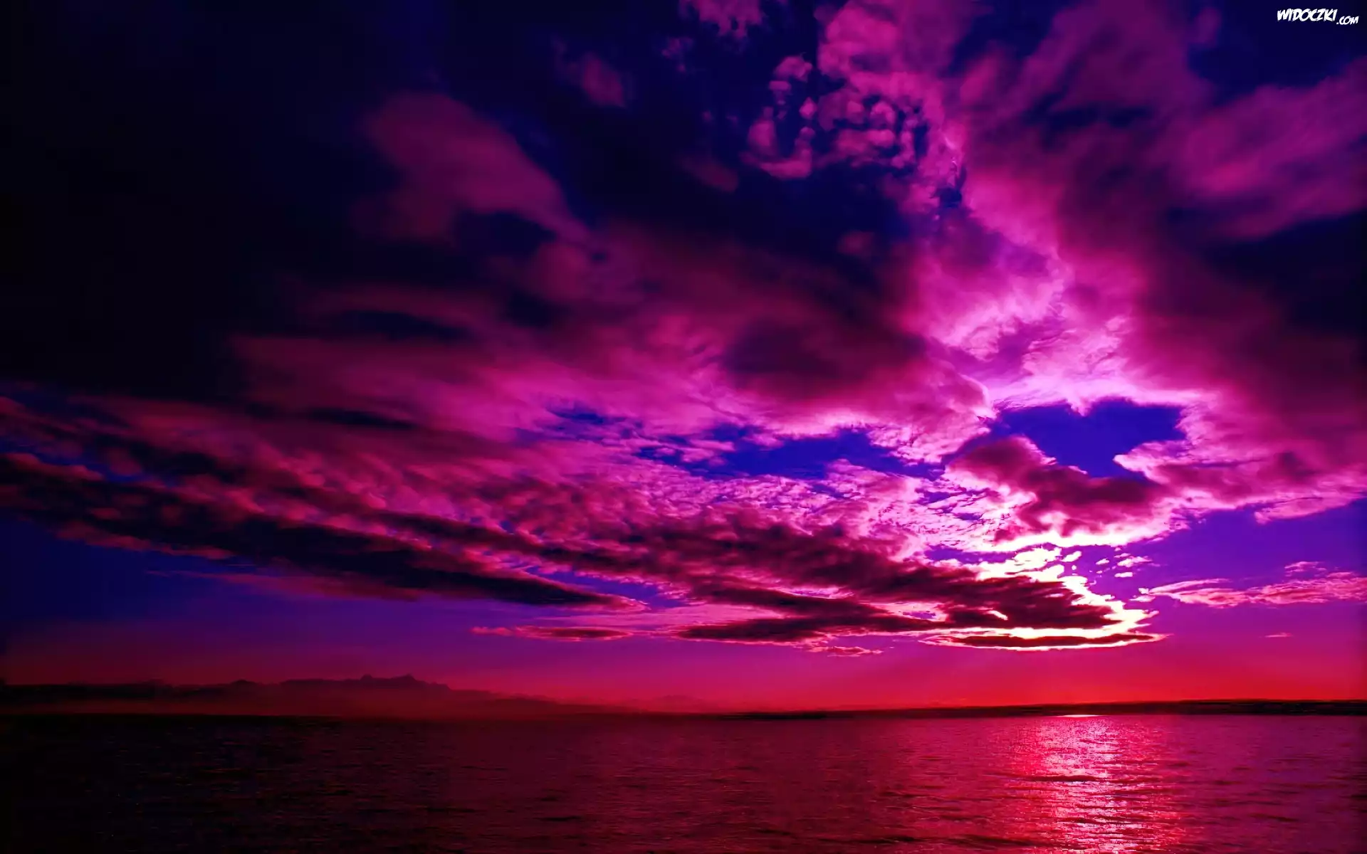 Zdjęcia, Purpurowy, Zachód, Słońca, Morze