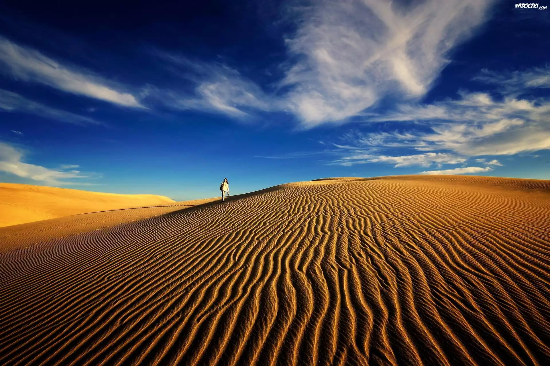 Pustynia, Niebo, Chmury, Człowiek