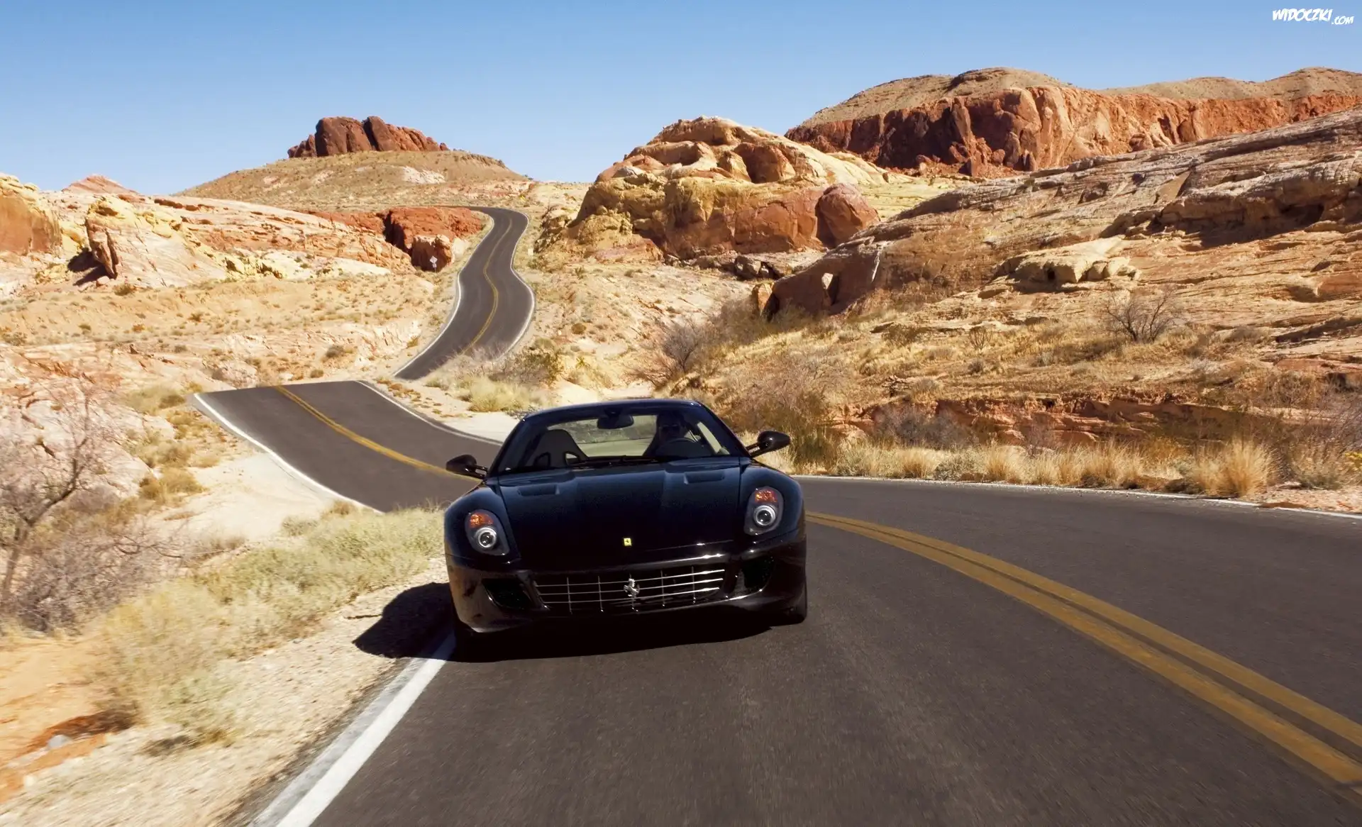 Zdjęcia, Pustynia, Droga, Czarne, Ferrari