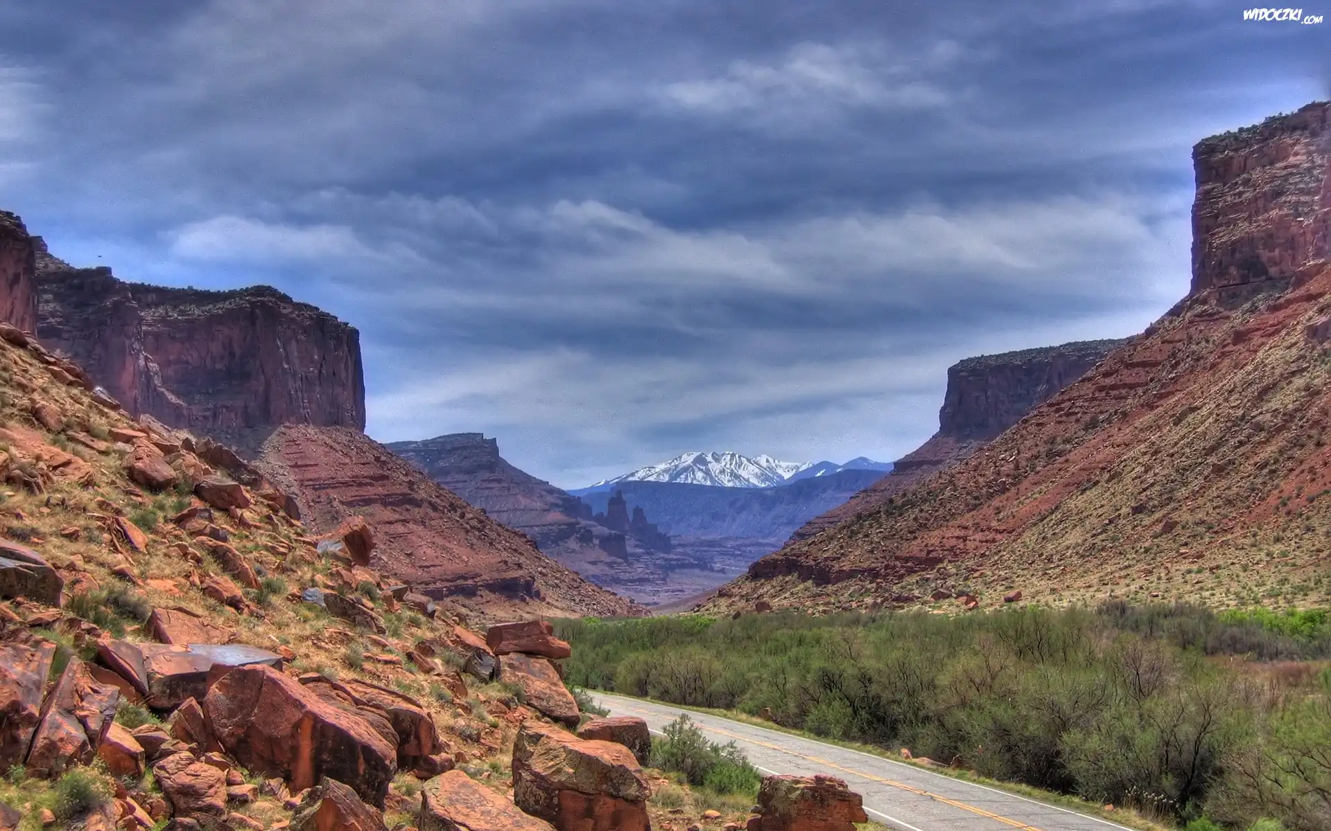 Zdjęcia, Pustynia, Droga, Góry, Krzewy