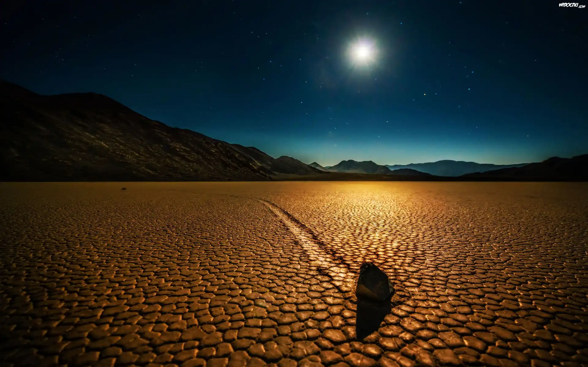 Pustynia, Góry, Księżyc, Gwiazdy, Kamień