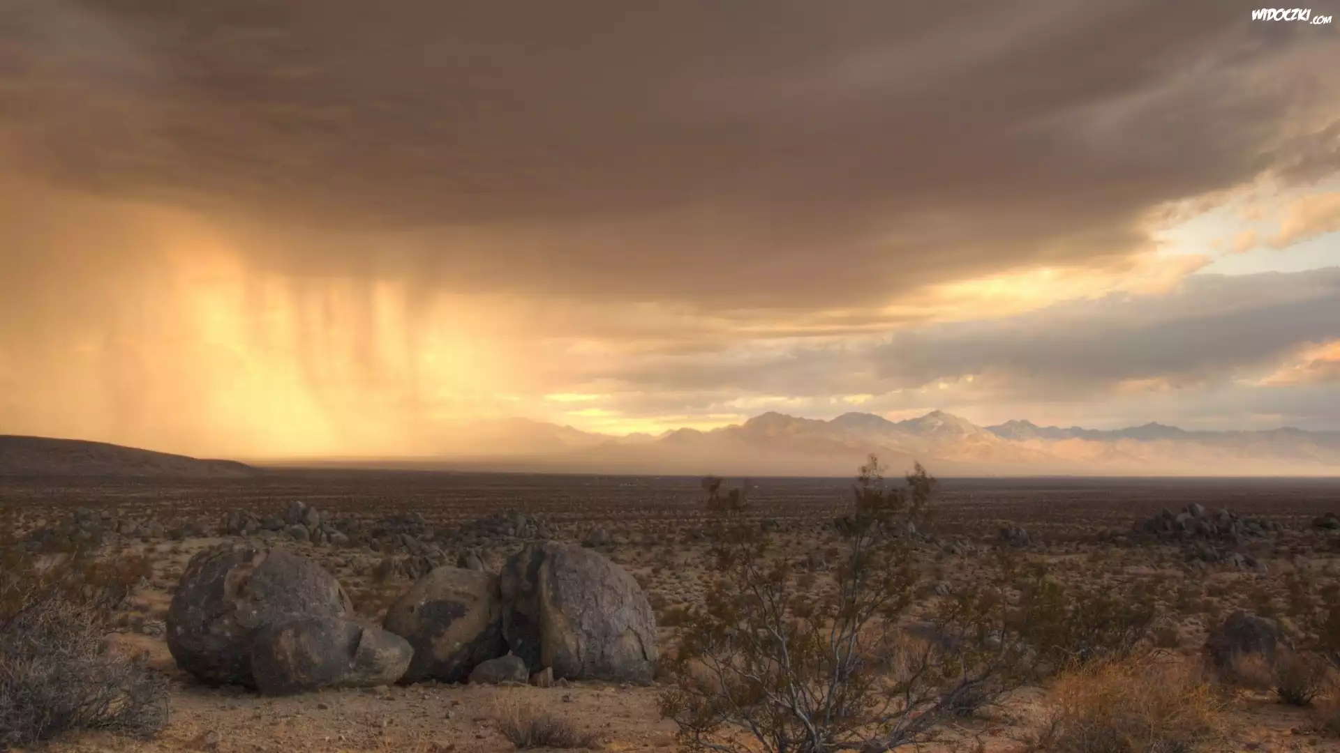 Zdj臋cia, Pustynia, Piasek, Kamienie, Krzewy, Chmury