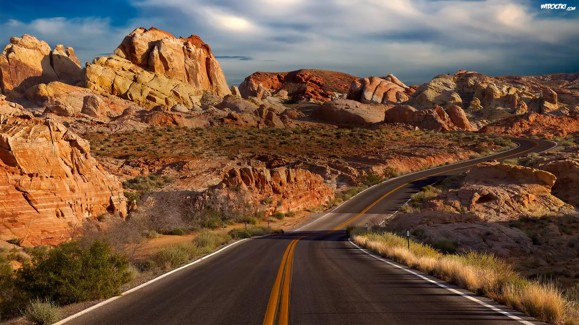 Stany Zjednoczone, Stan Nevada, Park Stanowy Dolina Ognia, Pustynia Mojave, Droga, Góry, Skały, Rośliny |