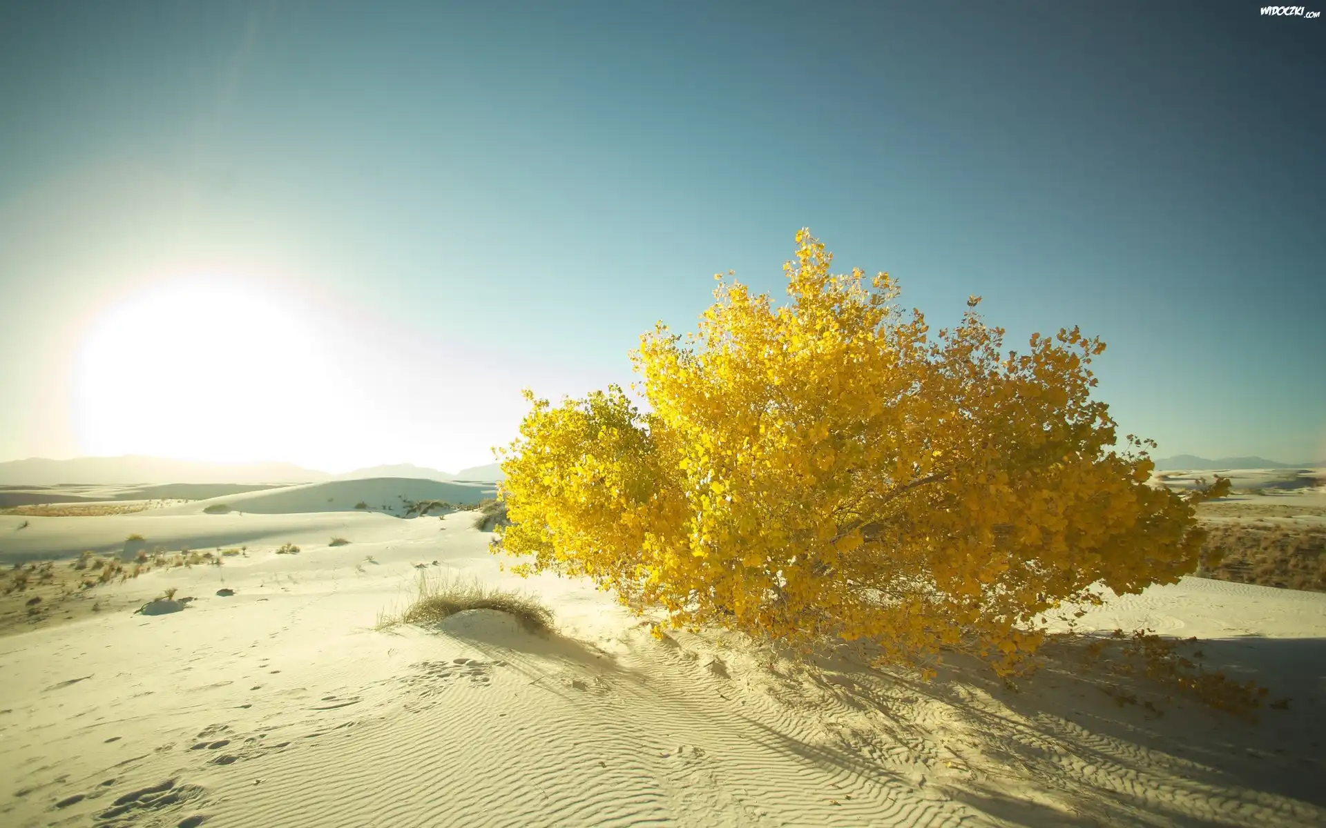 Zdjęcia, Pustynia, Krzew, Piasek, Słońce