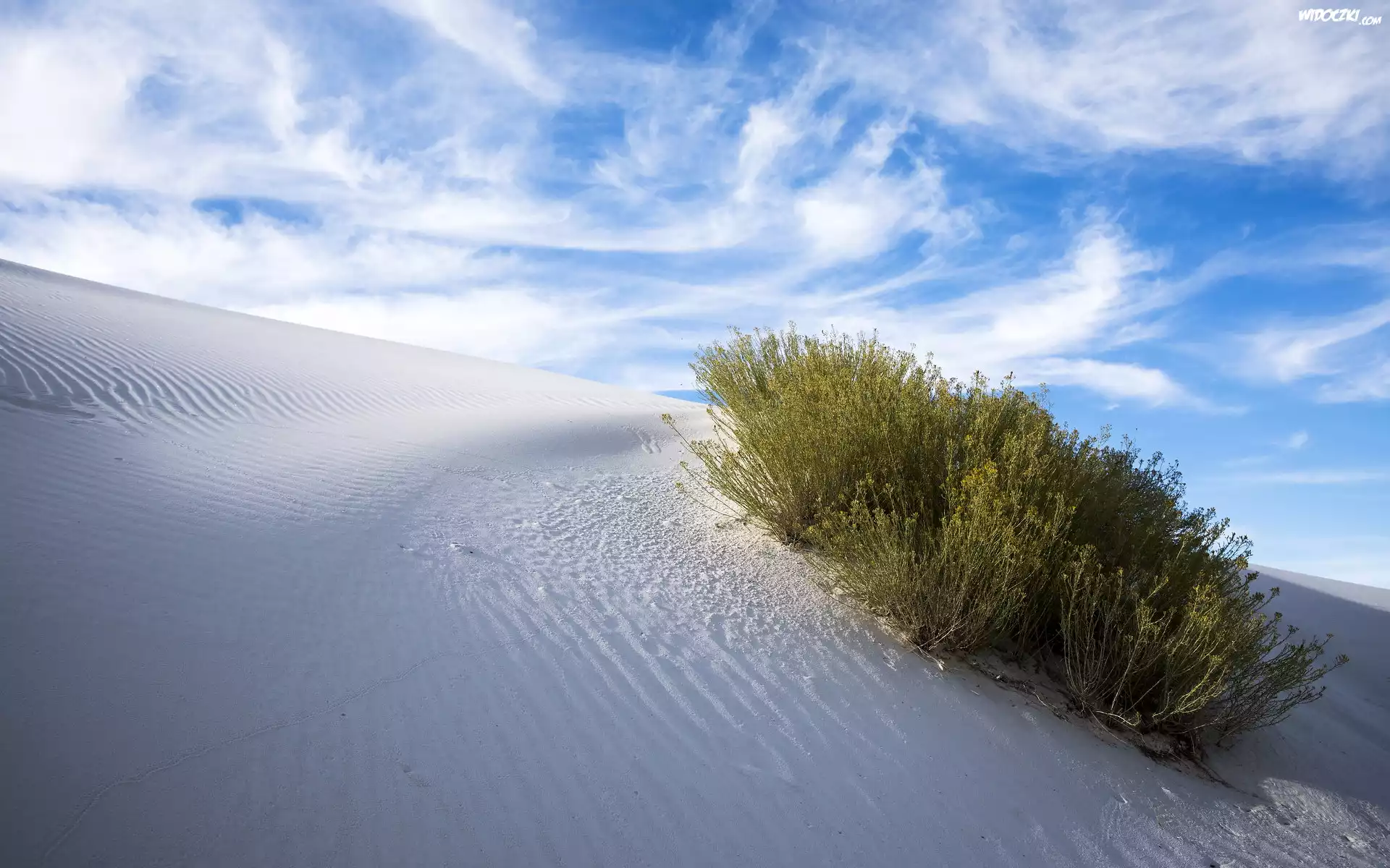 Pustynia, Wydma, Rośliny, Biały, Piasek, Pomnik narodowy, White Sands National Monument, Nowy Meksyk, Stany Zjednoczone |