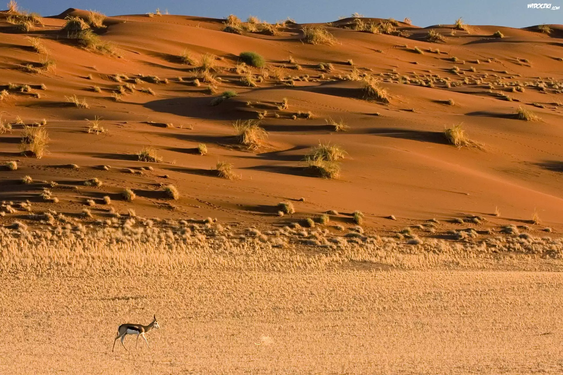Zdjęcia, Pustynia, Antylopa, Kępy, Suchej, Trawy, Namibia