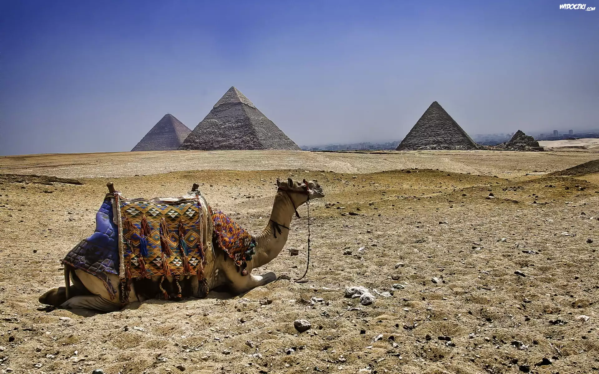 Zdjęcia, Wielbłąd, Pustynia, Piramidy