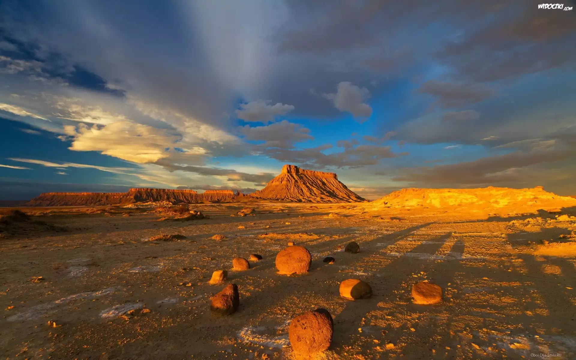 Pustynia, Góry, Skały, Kamienie, Zachód, Słońca