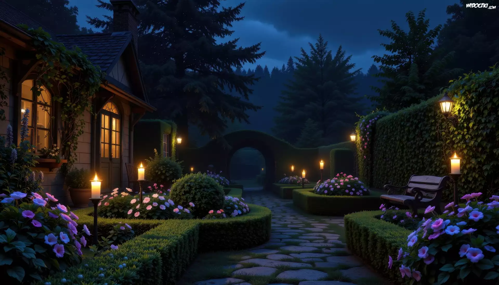 Zdjęcia, Dom, Latarnie, Żywopłot, Rabatki, Kwiaty, Ogród