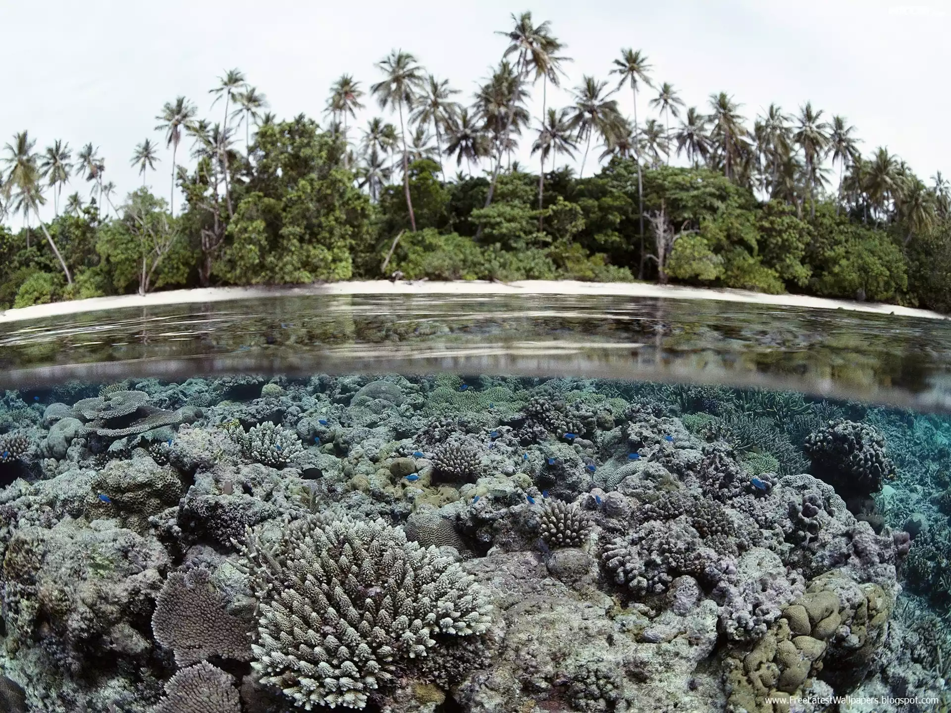 Zdjęcia, Rafa, Koralowa, Wyspy, Salomona, Palmy