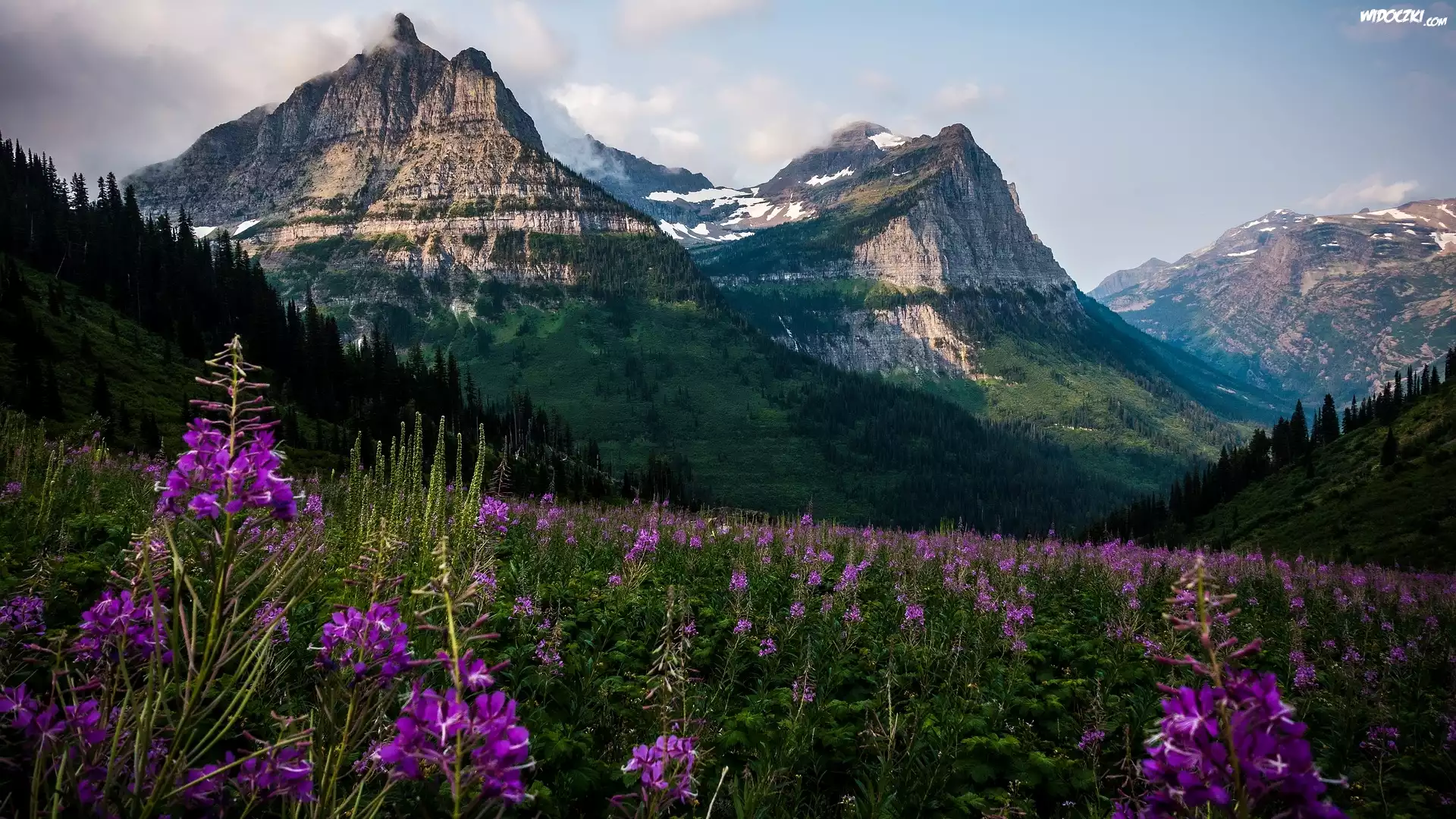 Zdjęcia, Góry Lewis Range, Góra Oberlin, Łąka, Kwiaty, Stan Montana, Stany Zjednoczone