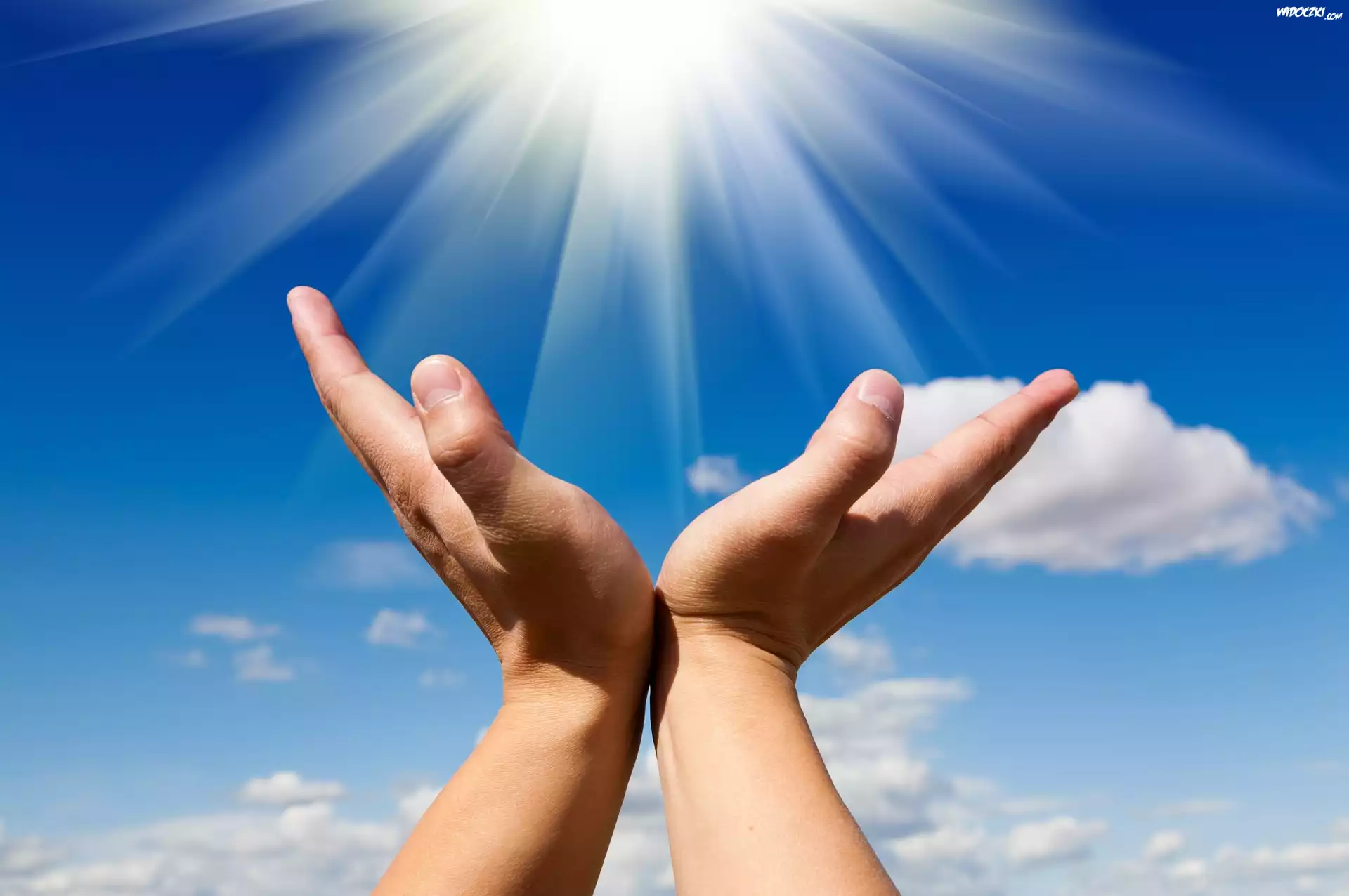 Ręce, Energia, Niebo, Promienie słońca
