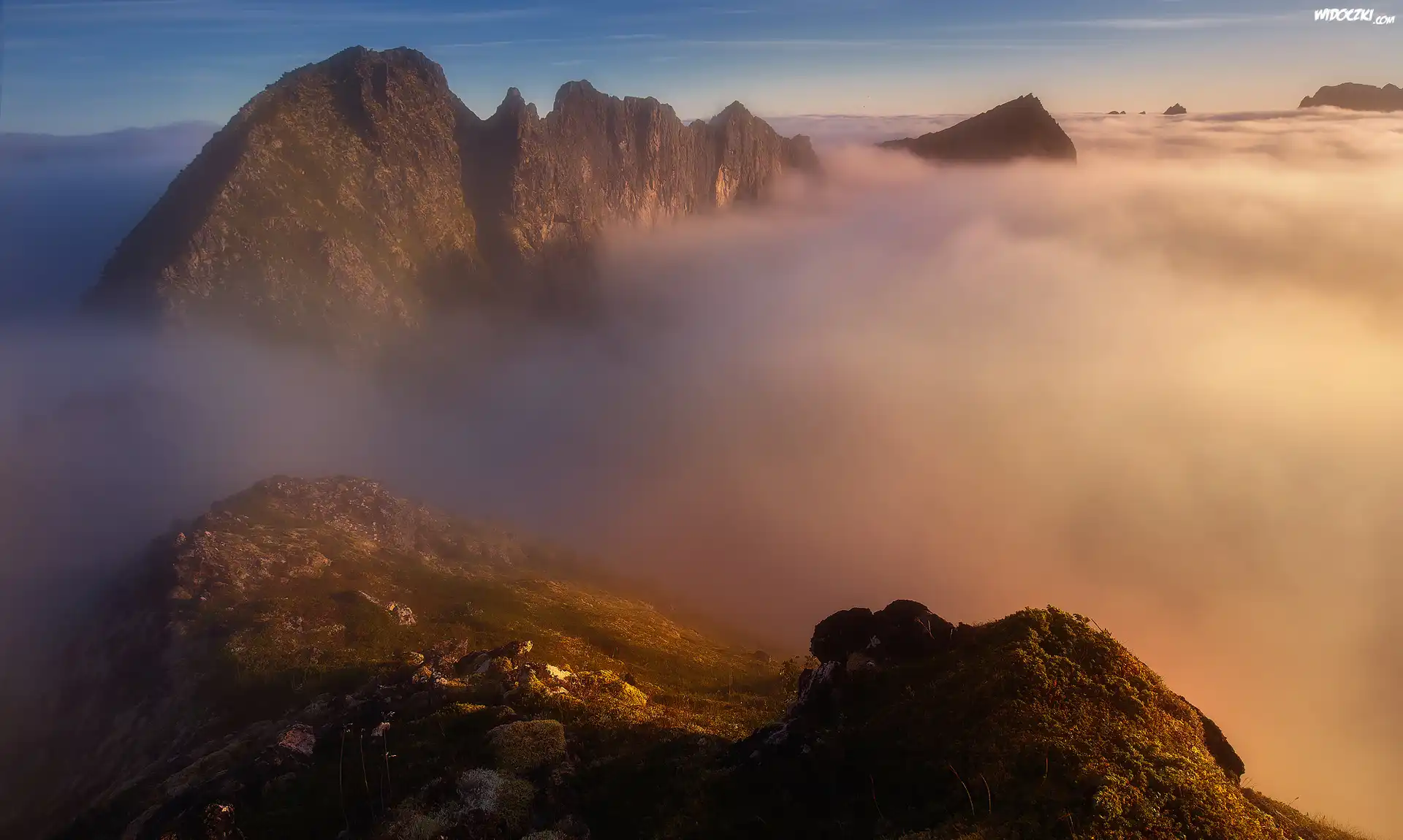 Zdjęcia, Norwegia, Region Troms, Wyspa Senja, Góry, Mgła