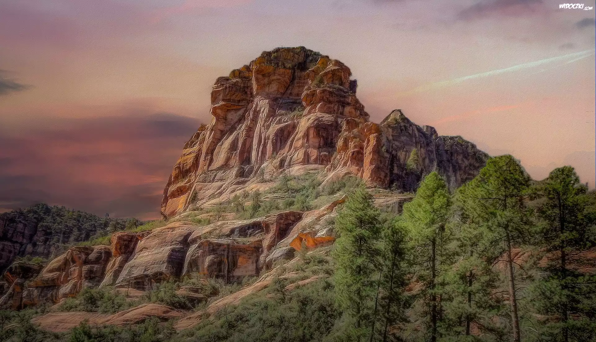 Zdjęcia, Reprodukcja, Obraz, Skała, Góra, Drzewa