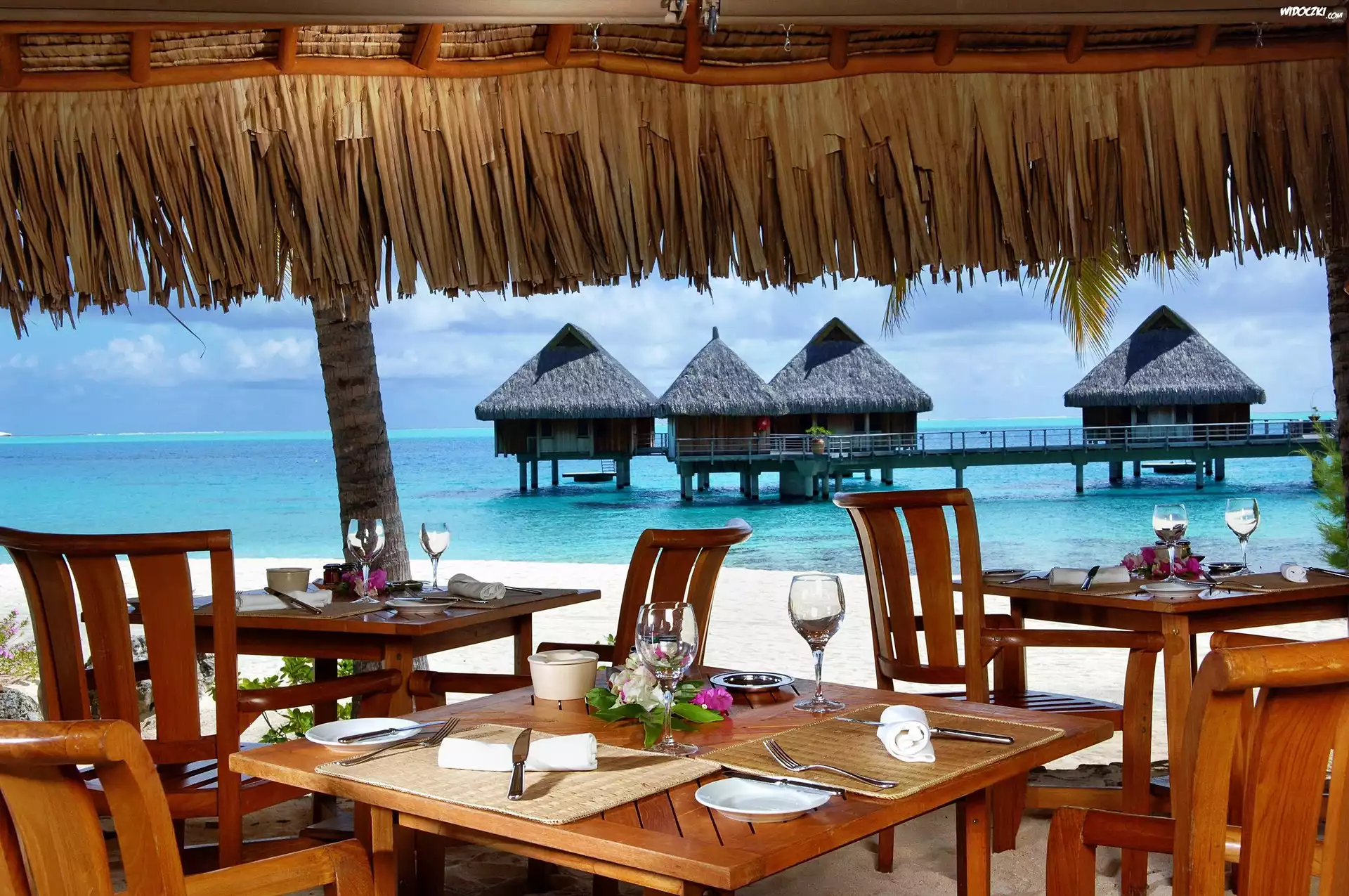Zdjęcia, Restauracja, Plaża, Ocean, Bora Bora