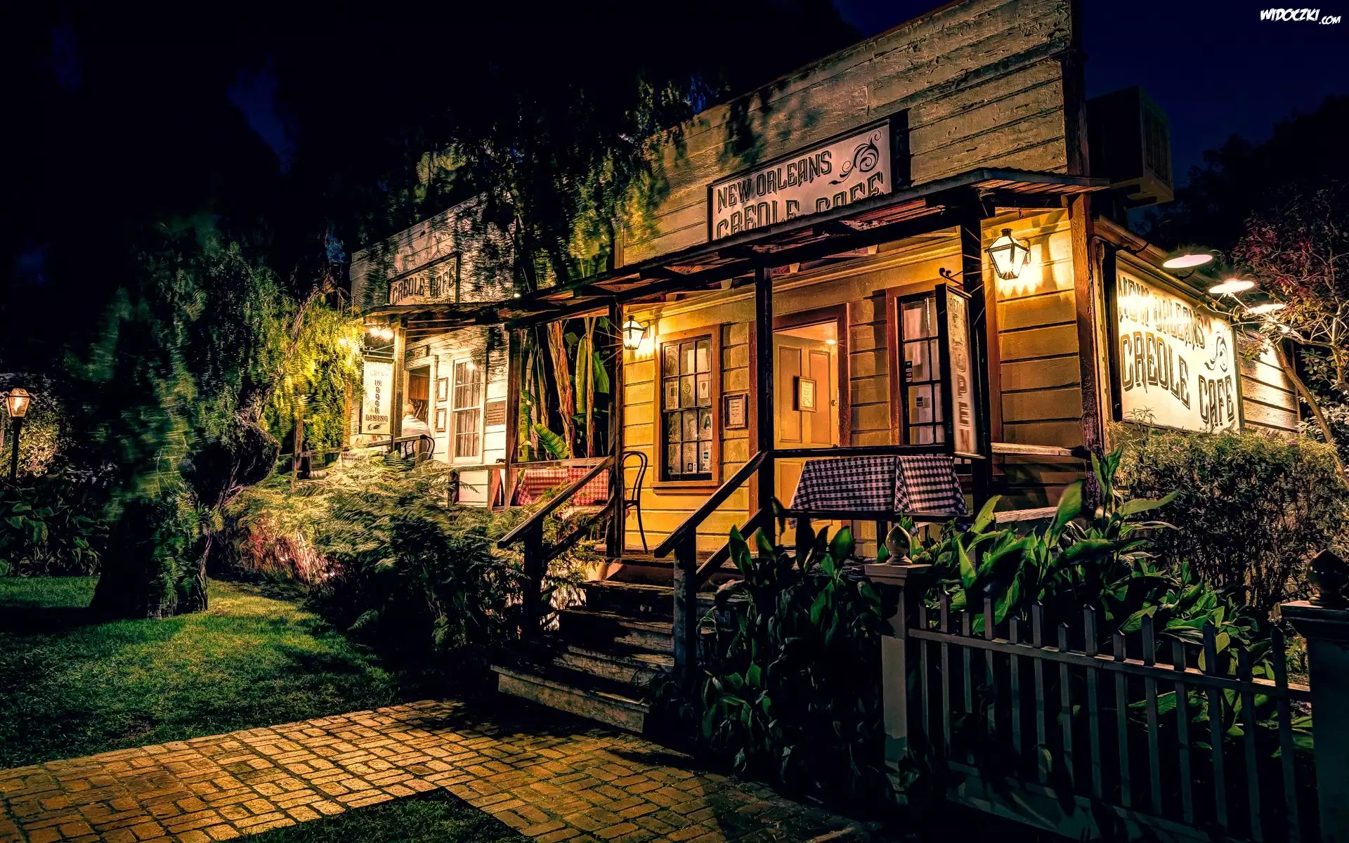 Zdjęcia, Restauracja, Dom, Schody, Stoliki, Drzewa, Ogródek