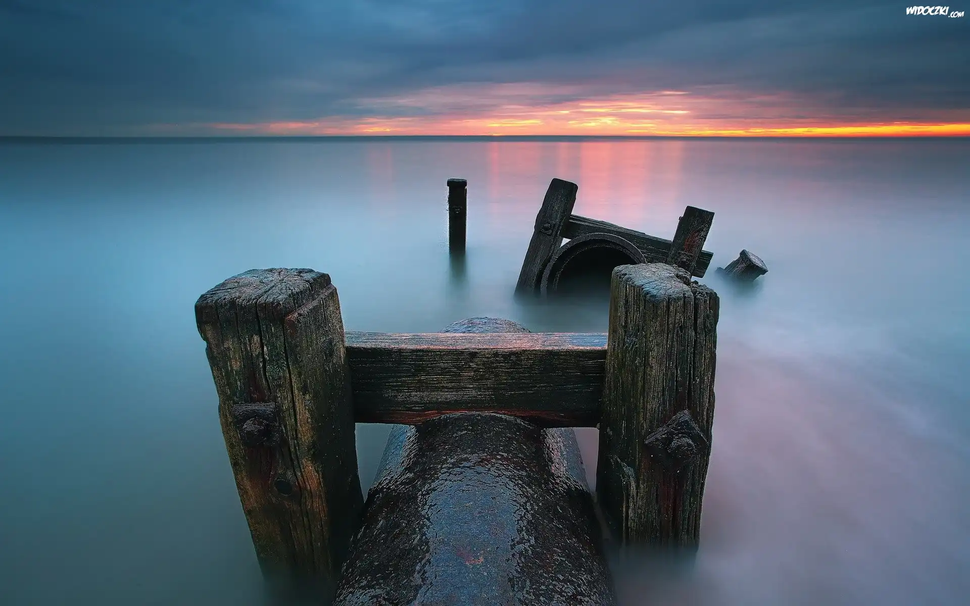 Zdjęcia, Resztki, Mola, Zachód, Słońca, Morze