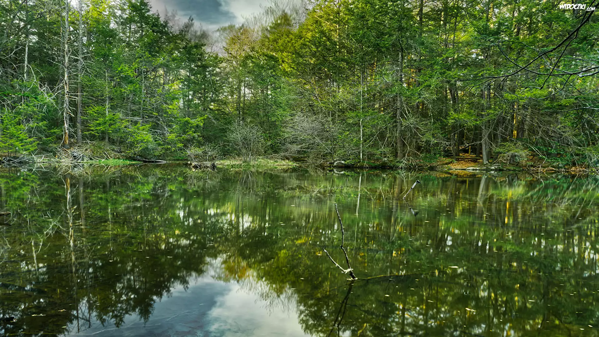 Rezerwat przyrody Roaring Brook Nature Center, Miejscowość Canton, Stan Connecticut, Stany Zjednoczone, Las, Jezioro, Odbicie |
