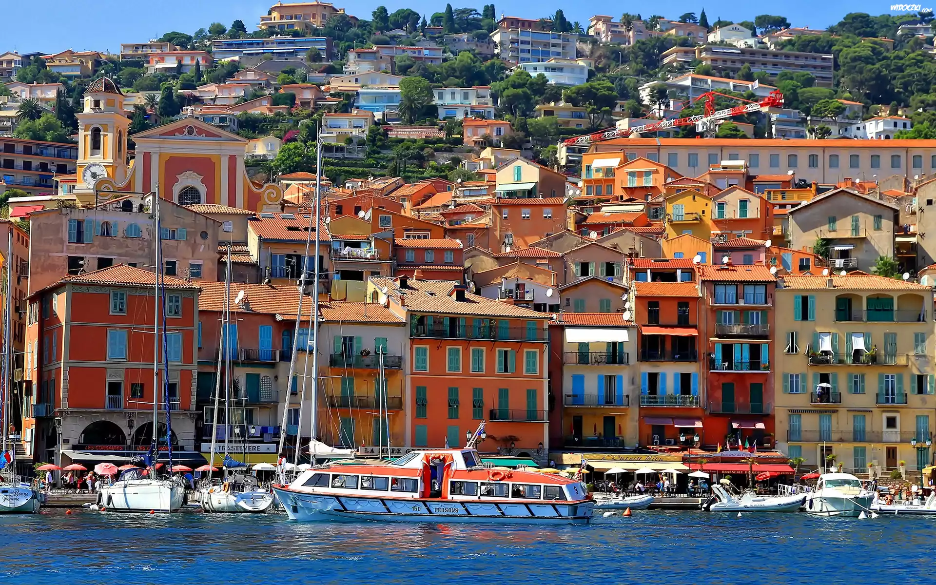 Zdjęcia, Francuska, Riwiera, Wzgórze, Panorama, Miasta, Nabrzeże, Jachty