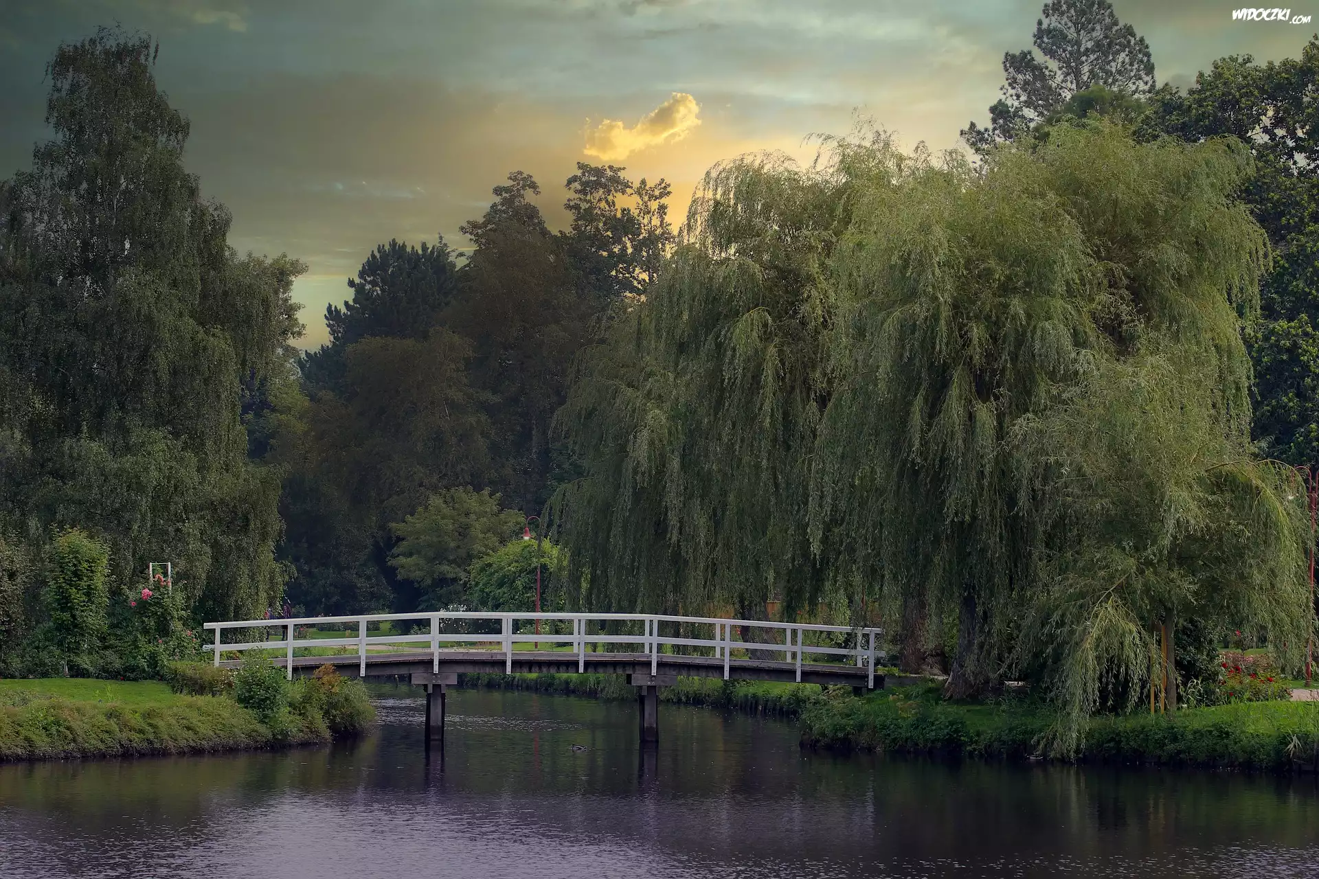 Rosarium Uetersen, Ogród różany, Staw, Mostek, Drzewa, Wierzby płaczące, Uetersen, Szlezwik-Holsztyn, Niemcy |