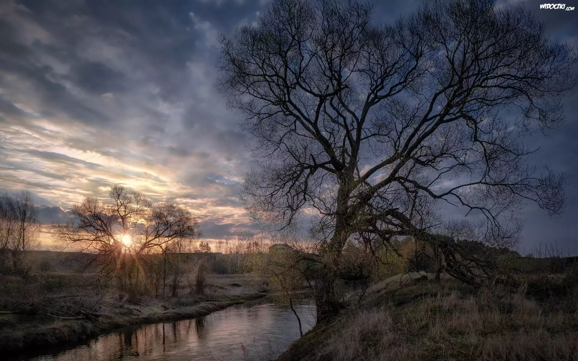 Zdjęcia, Wschód słońca, Chmury, Rzeka Istra, Drzewa, Obwód moskiewski, Rosja