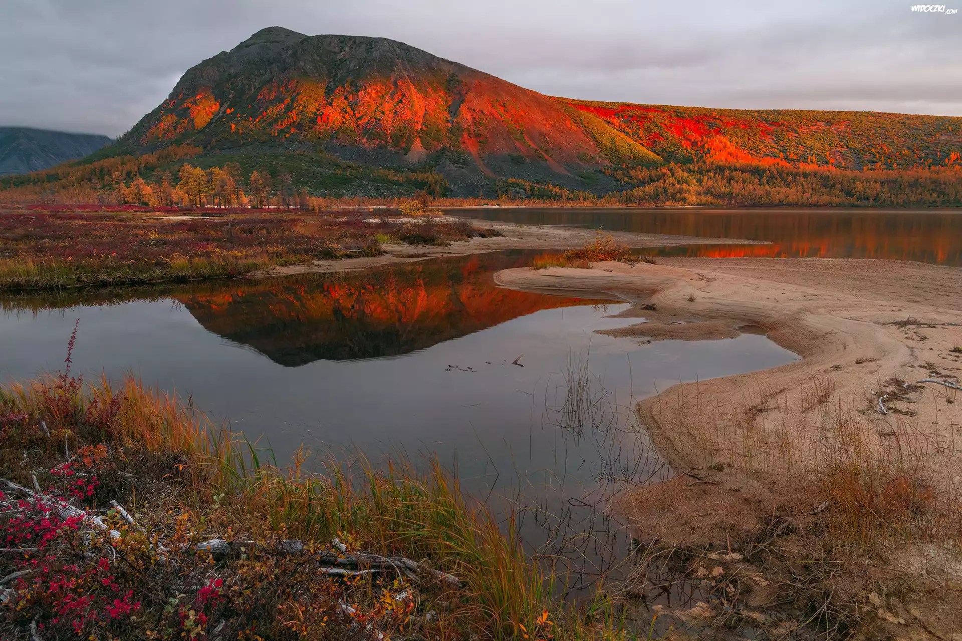 Zdjęcia, Góry Kołymskie, Drzewa, Jezioro Jack London, Kołyma, Magadan, Rosja