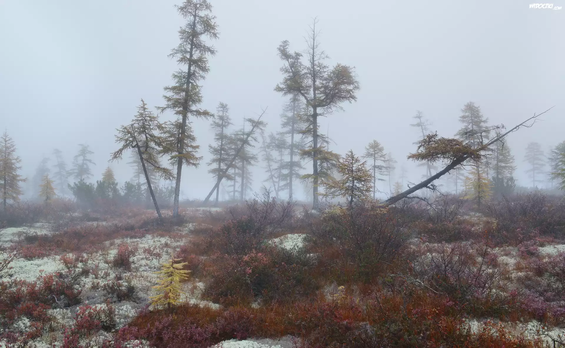 Jesień, Mgła, Drzewa, Rośliny, Krzewy, Kołyma, Obwód magadański, Rosja