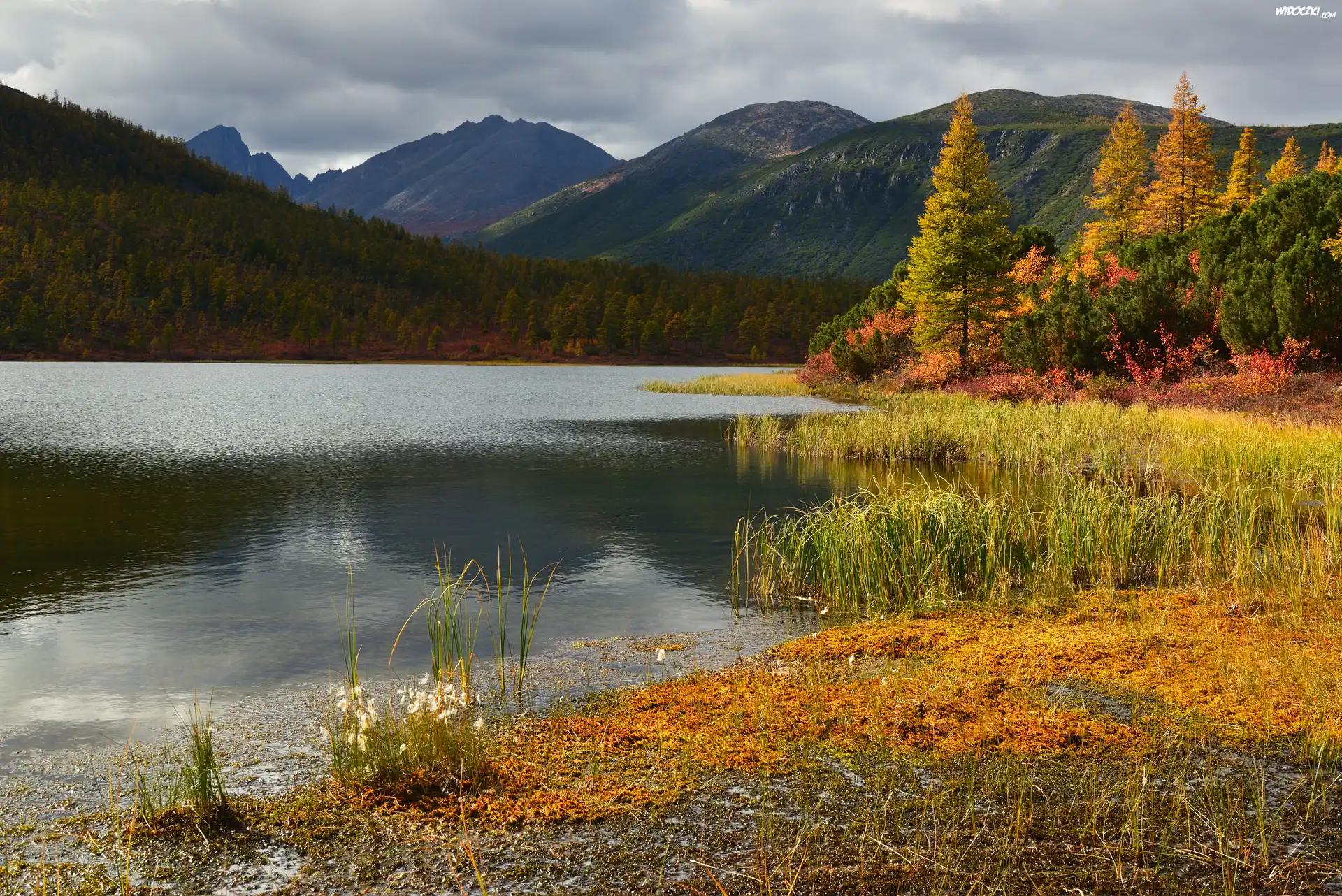 Jesień, Drzewa, Góry Kołymskie, Jezioro, Kołyma, Obwód magadański, Rosja