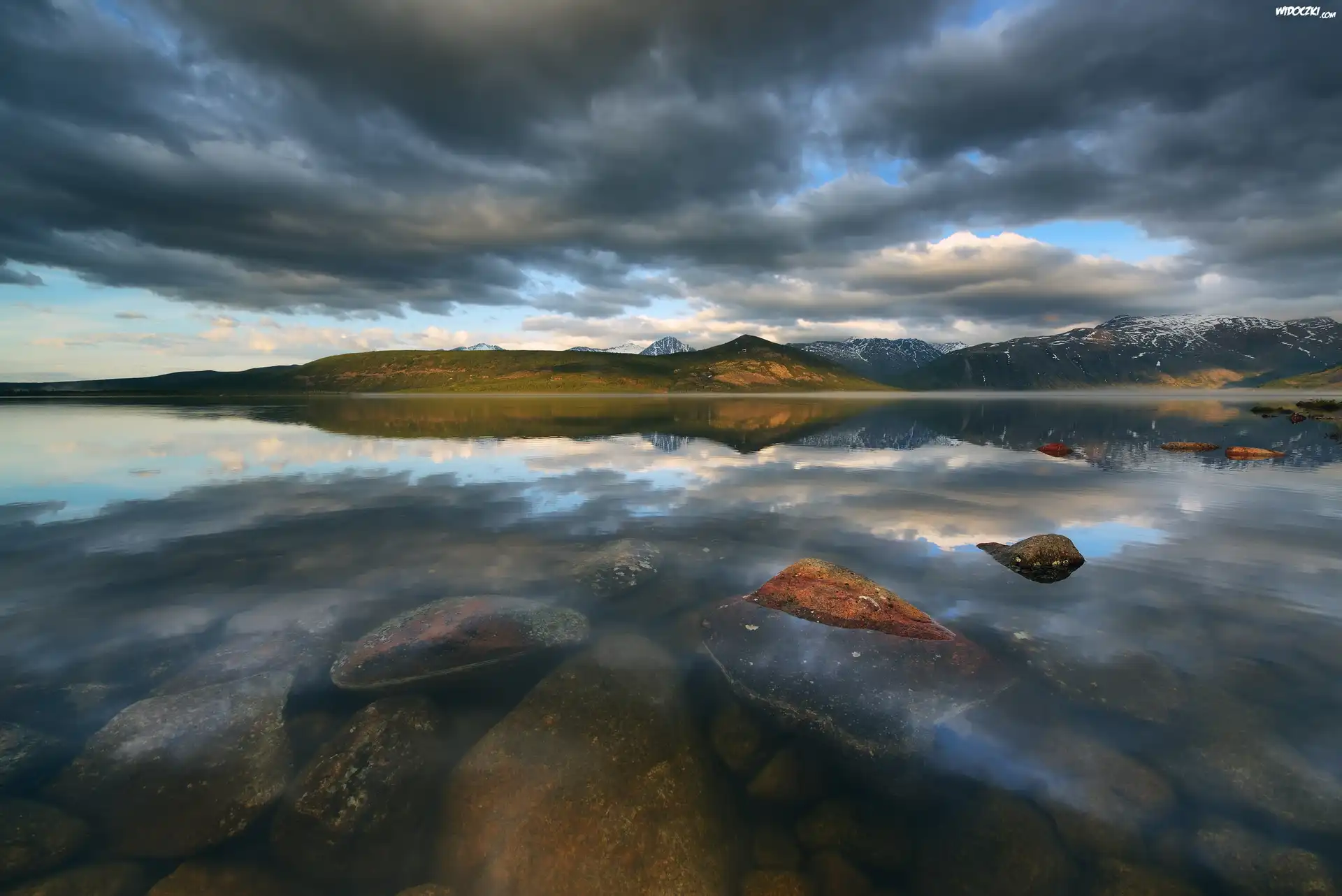 Zdjęcia, Jezioro Jack London, Kamienie, Góry, Chmury, Kołyma, Obwód magadański, Rosja