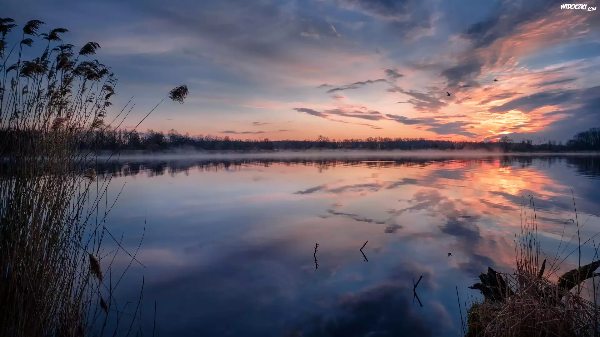 Zdjęcia, Wschód słońca, Jezioro Szaturskie, Trawy, Szatura, Obwód moskiewski, Rosja