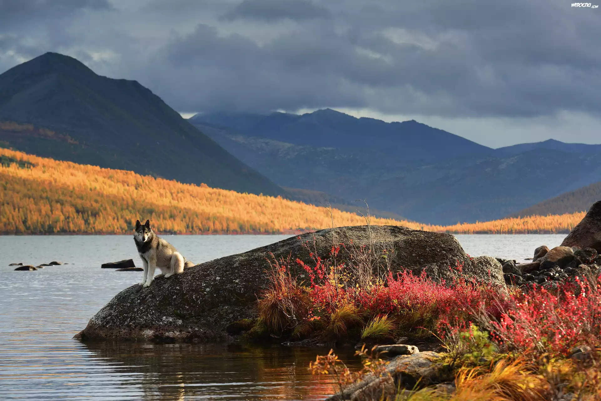 Zdjęcia, Jezioro Jack London, Góry Kołymskie, Pies, Jesień, Kołyma, Rosja
