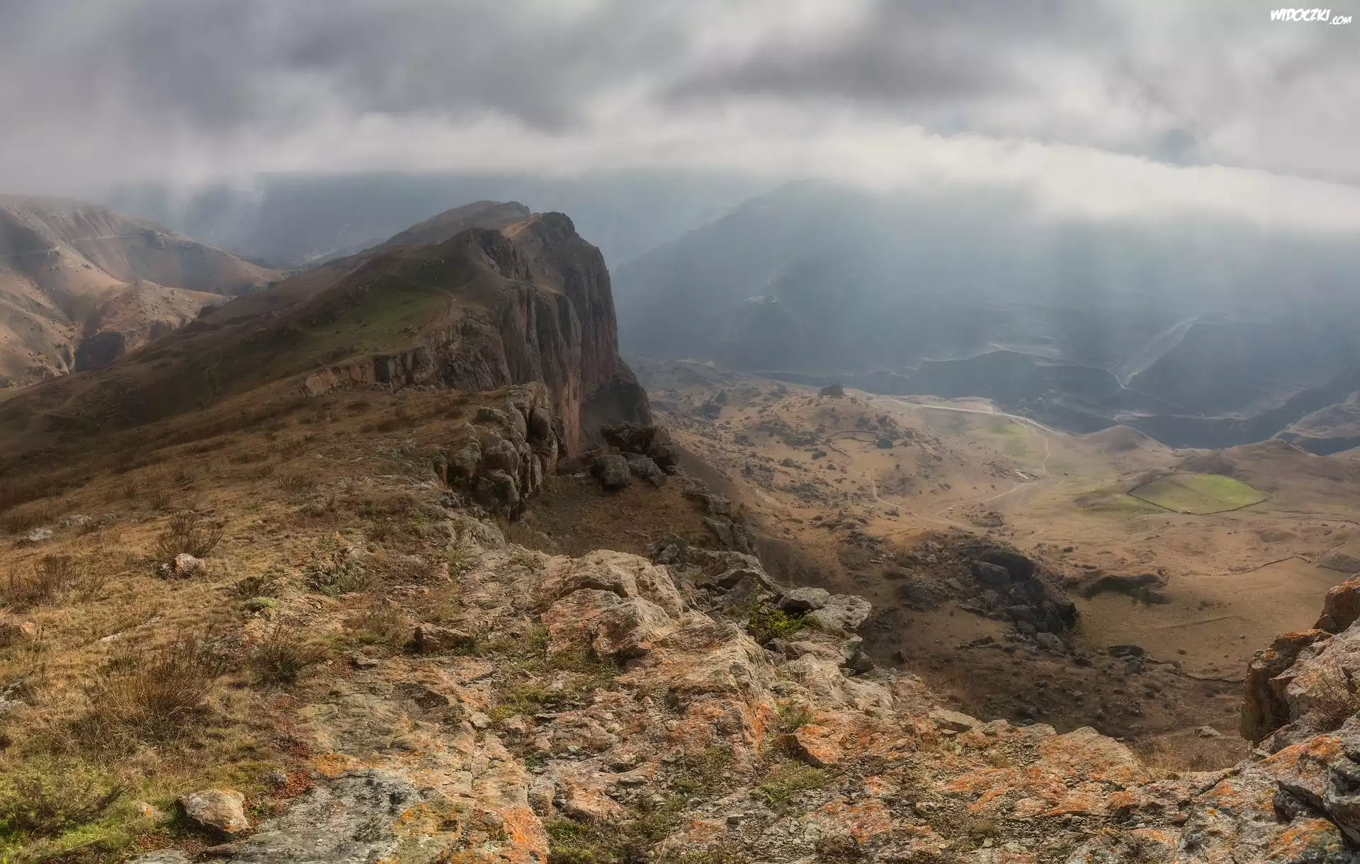 Zdjęcia, Góry, Kaukaz, Mgła, Kamienie, Rośliny, Wąwóz, Kabardo-Bałkaria, Rosja