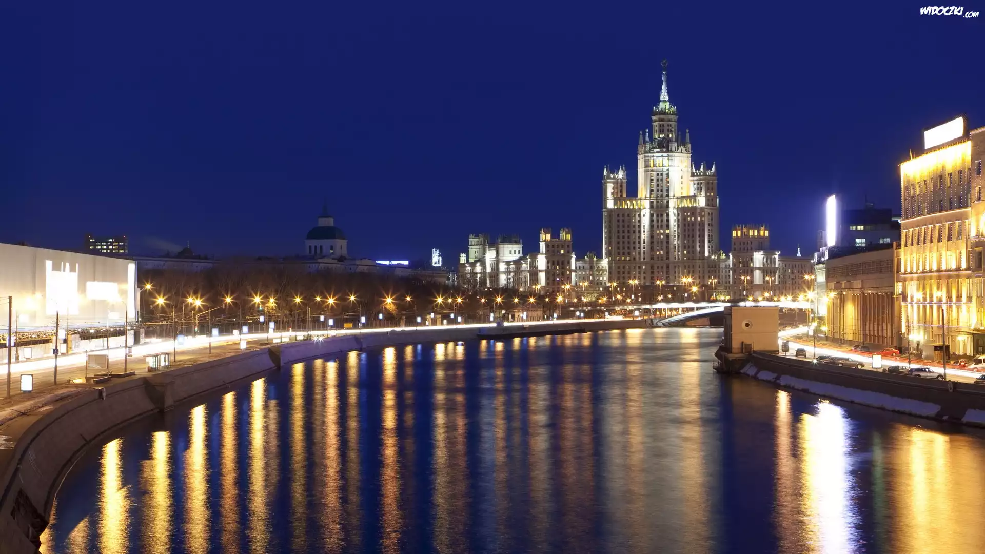 Rosja, Moskwa, Noc, Rzeka