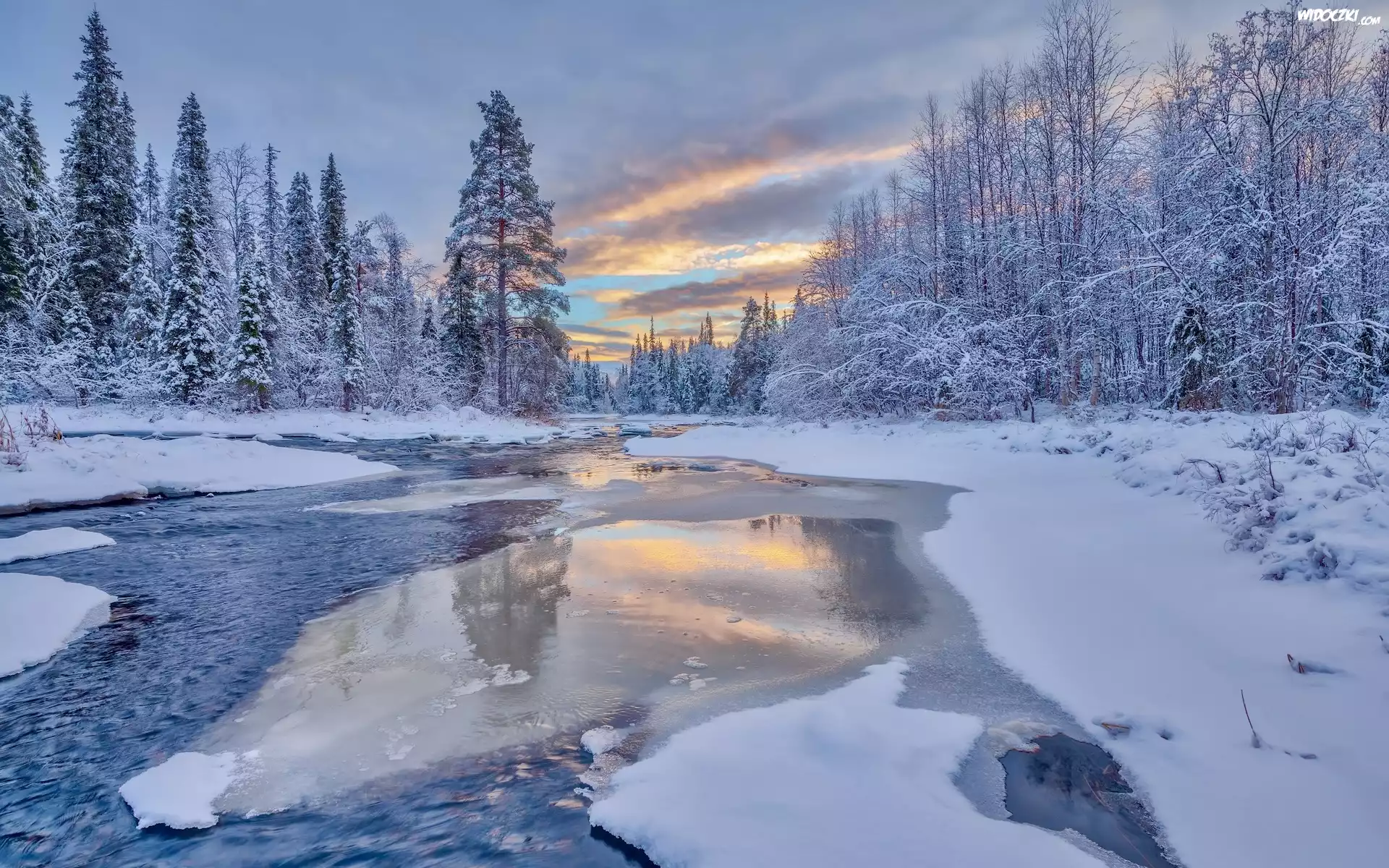 Zdjęcia, Rosja, Obwód murmański, Półwysep Kolski, Rzeka Piła, Zima, Drzewa
