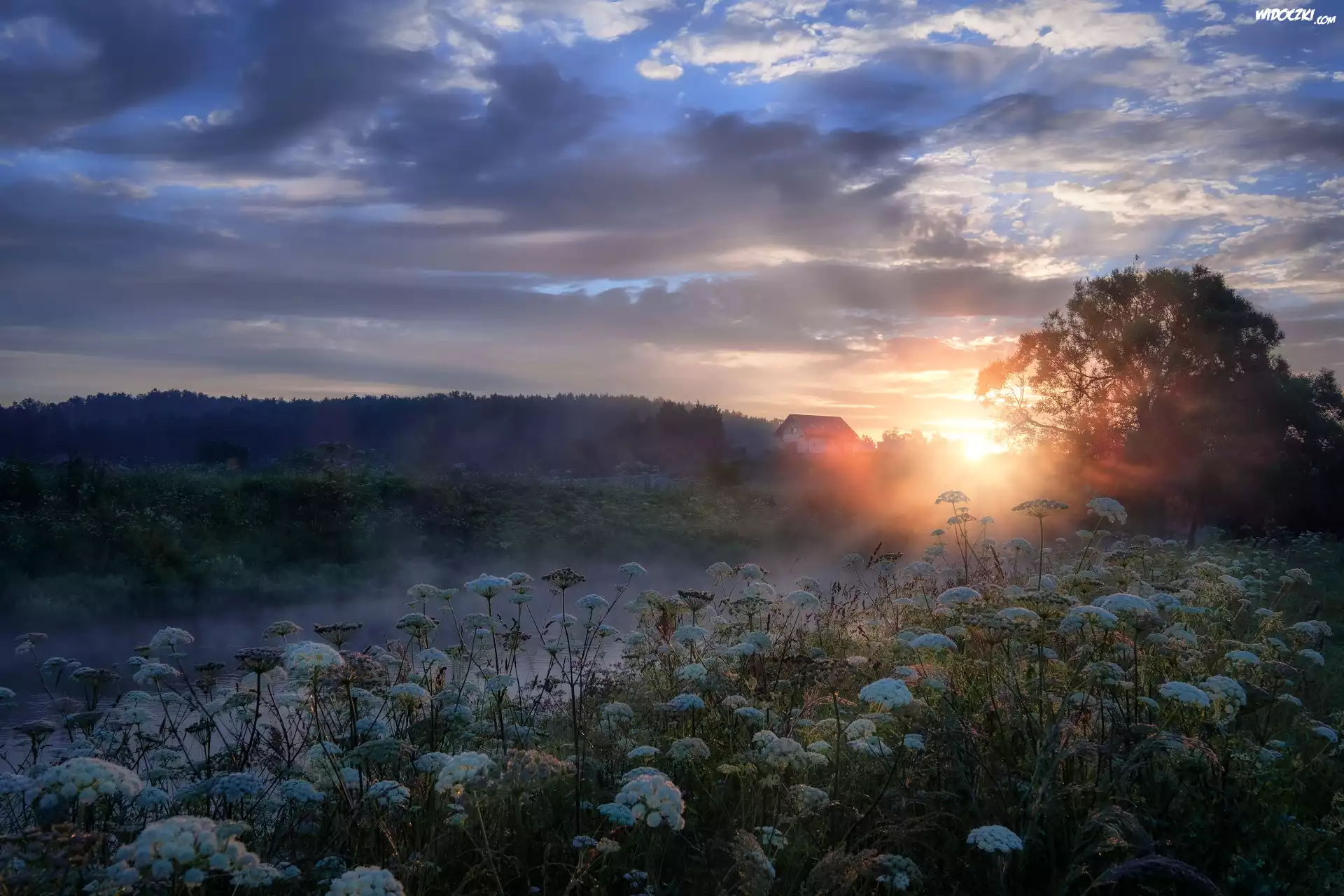 Zdjęcia, Rzeka Istra, Mgła, Drzewa, Roślinność, Wschód słońca, Obwód moskiewski, Rosja