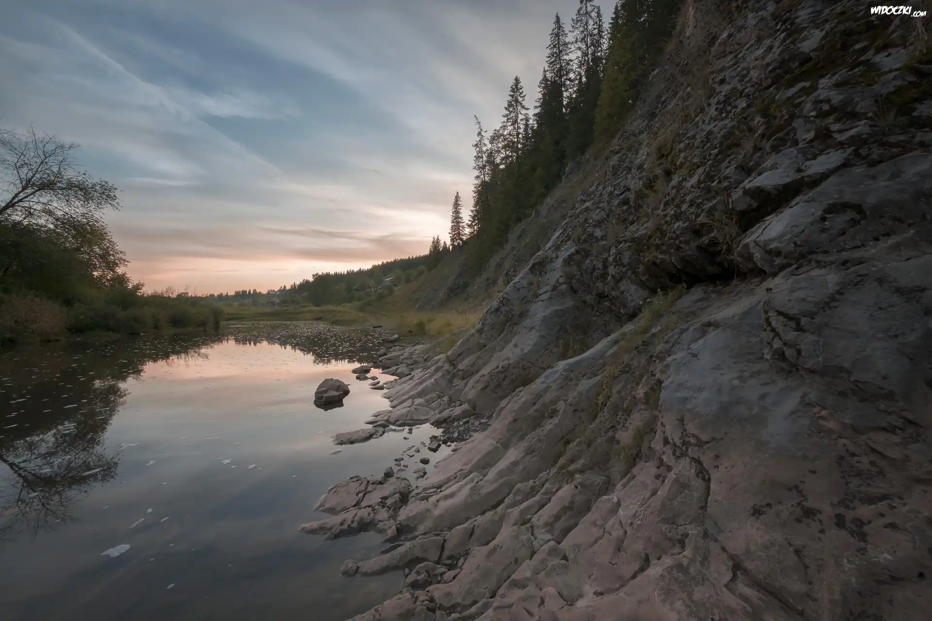 Zdjęcia, Rzeka Czusowaja, Skały, Drzewa, Wieś Kyn, Kraj Permski, Rosja