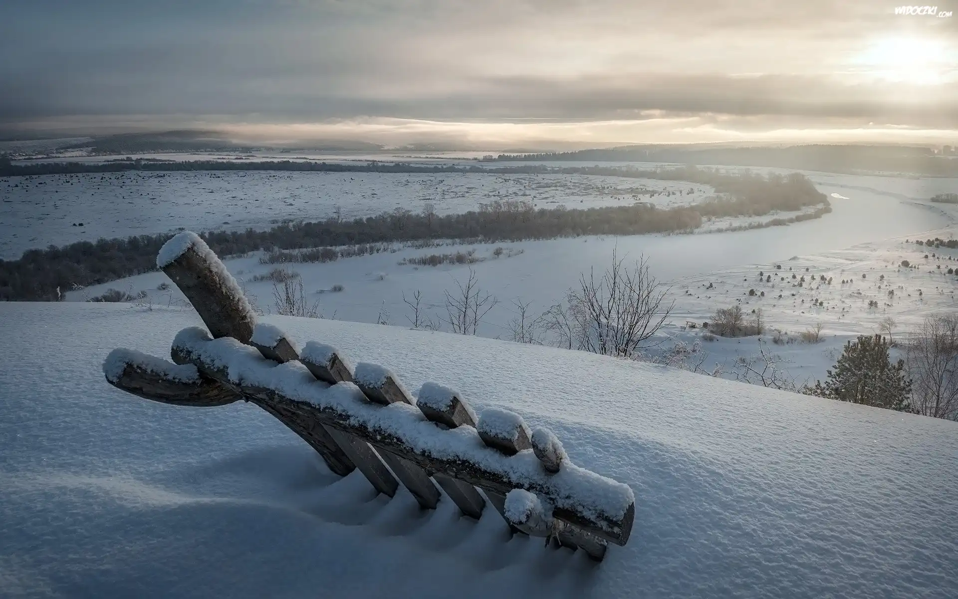 Zdjęcia, Zima, Zaspy, Zaśnieżona, Rzeka Sylva, Pola, Płotek, Kraj Permski, Rosja