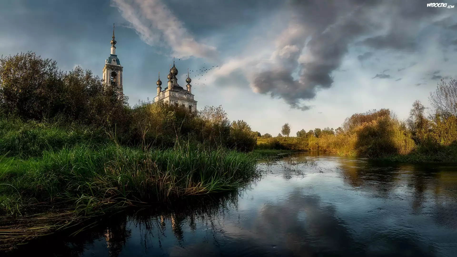 Cerkiew, Rzeka Ustya, Drzewa, Krzewy, Savinskoye, Obwód jarosławski, Rosja