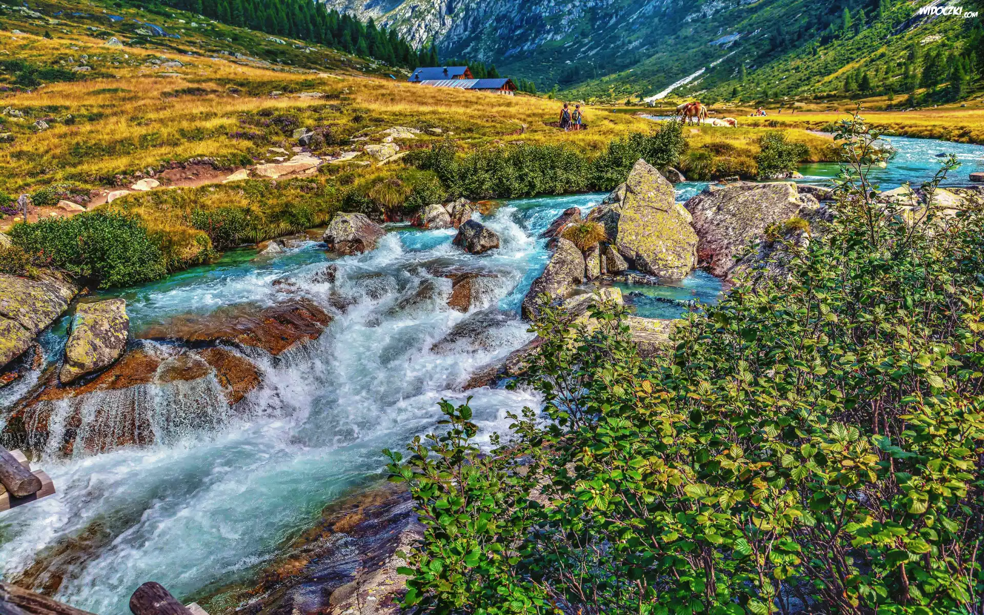 Zdjęcia, Góry, Rzeka, Kamienie, Roślinnność