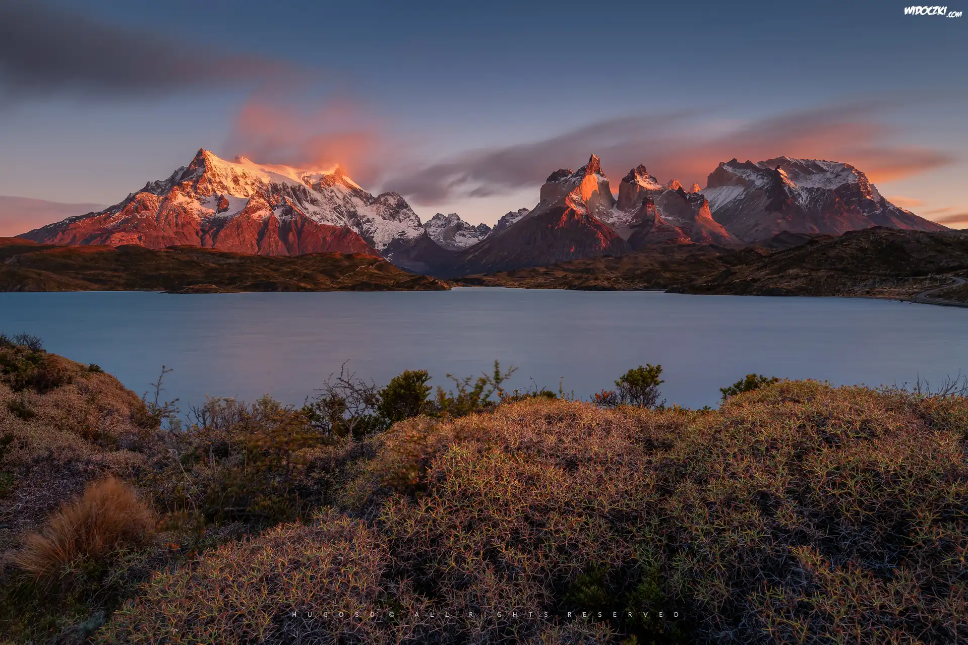 Chile, Patagonia, Góry, Torres del Paine, Jezioro, Jesień, Roślinność, Park Narodowy Torres del Paine |