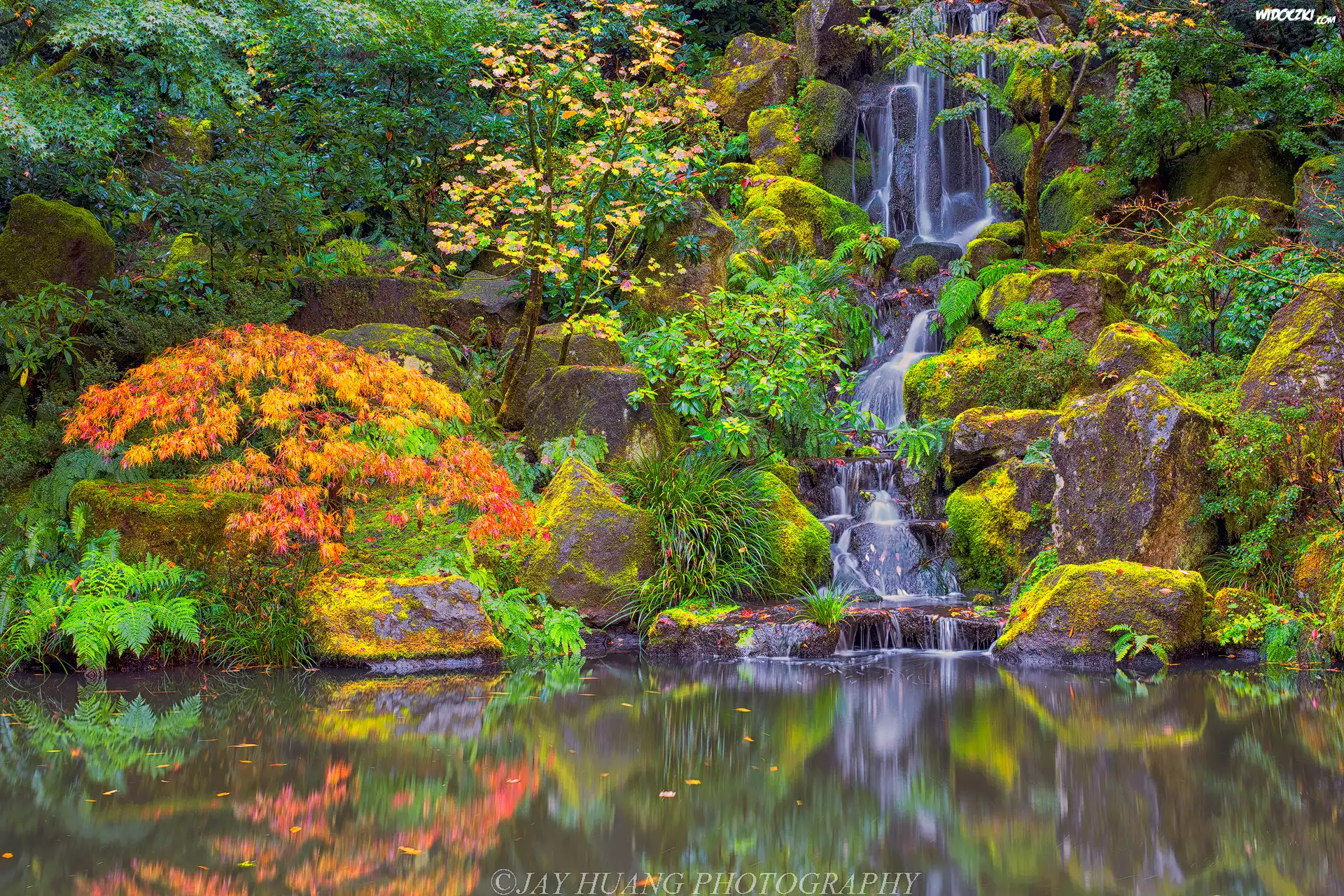 Ogród japoński, Drzewa, Krzewy, Roślinność, Wodospad, Skały, Portland Japanese Garden, Portland, Oregon, Stany Zjednoczone |