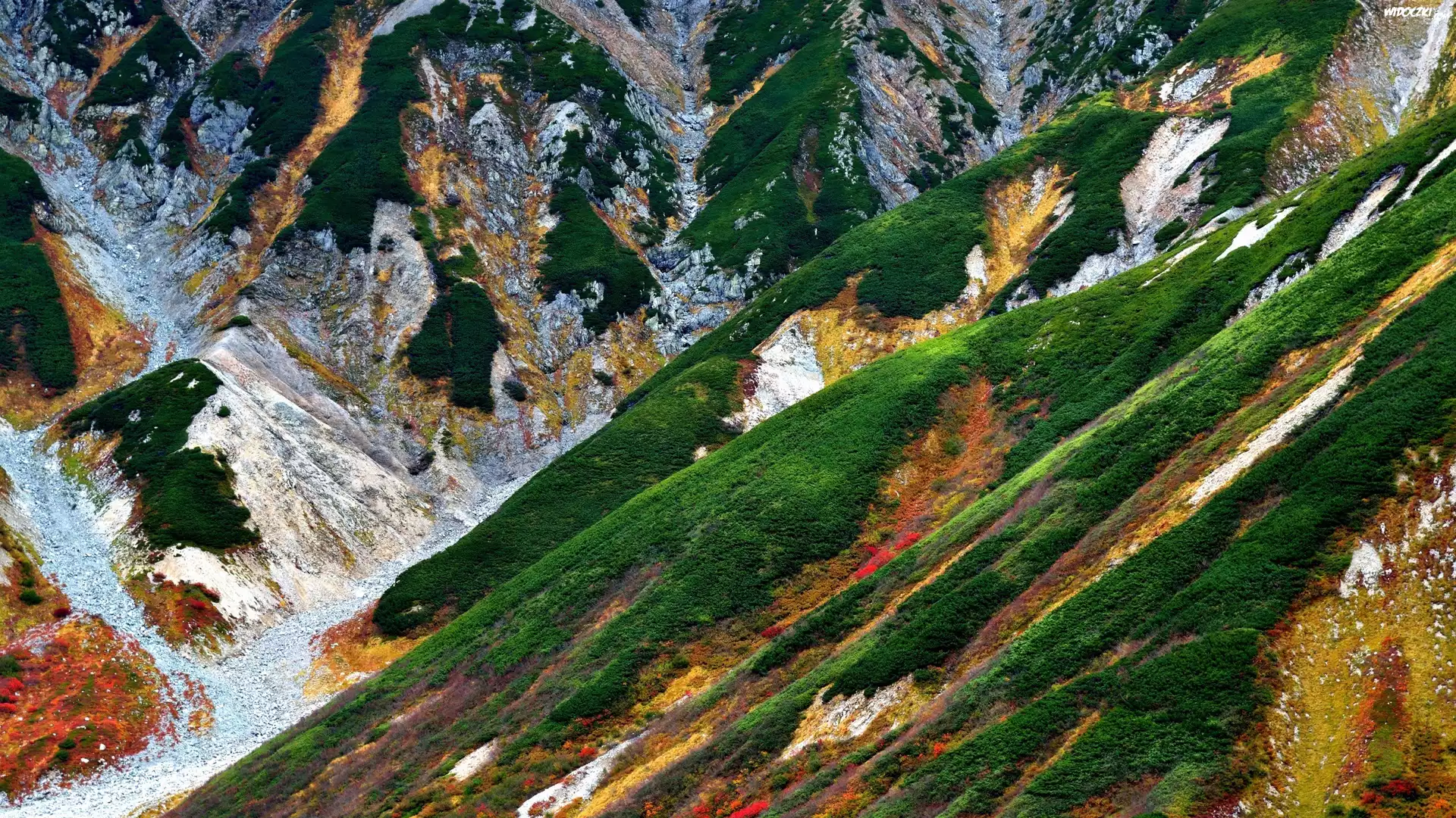 Zdjęcia, Zbocza, Roślinność, Góra Mount Tate, Tateyama, Japonia