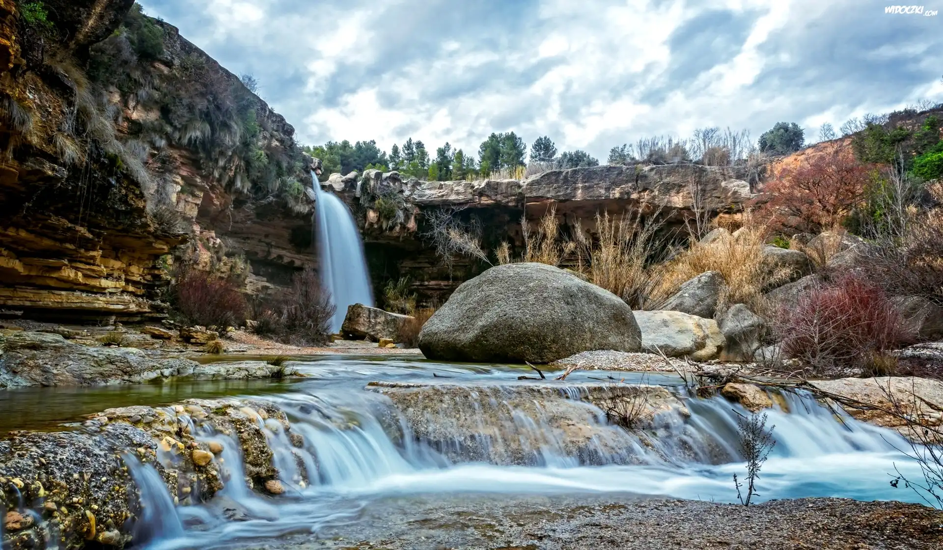 Zdjęcia, Hiszpania, La Portellada, Wodospad El Salt, Skały, Kamienie, Rośliny