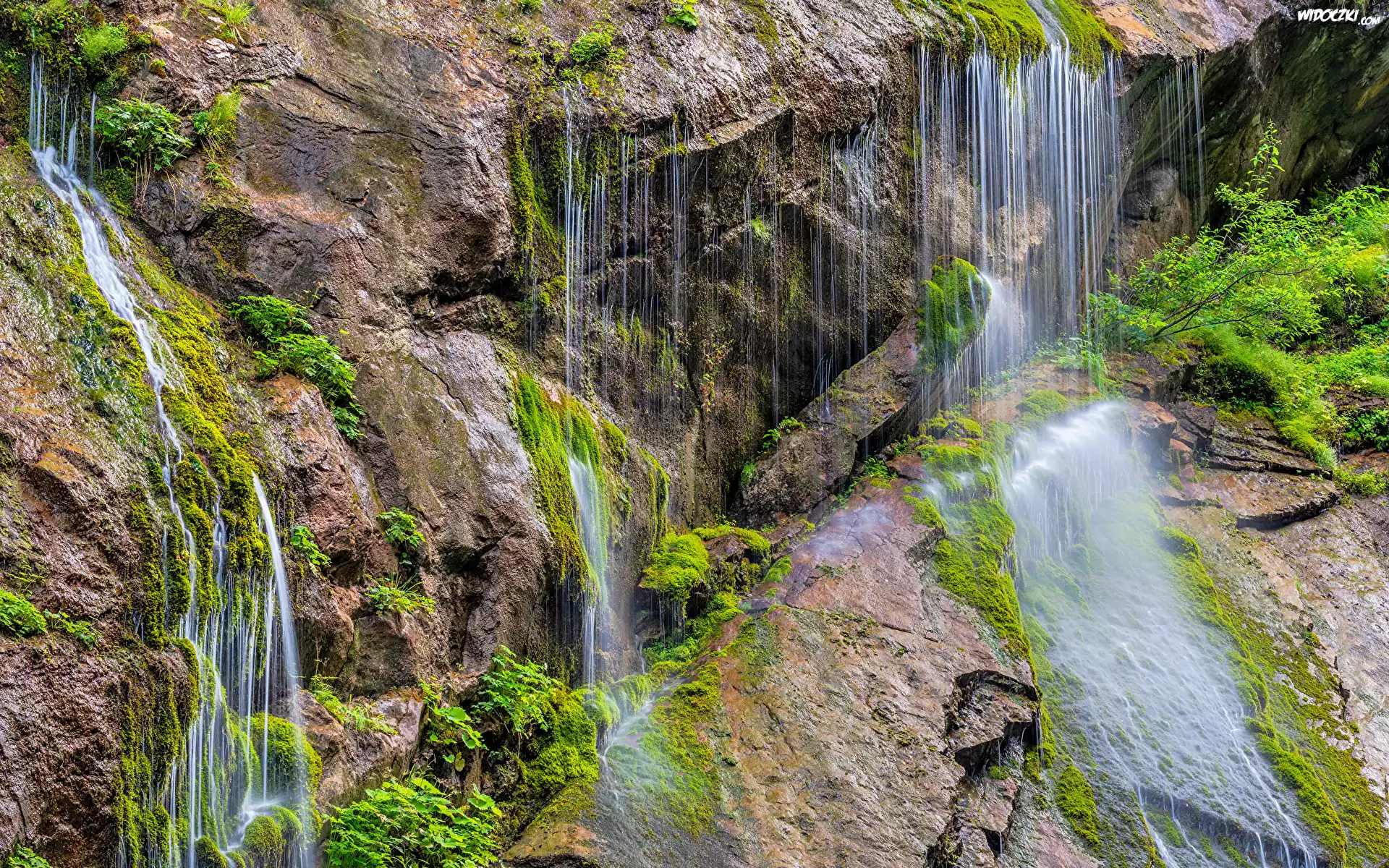 Zdjęcia, Wodospad, Skały, Mech, Rośliny