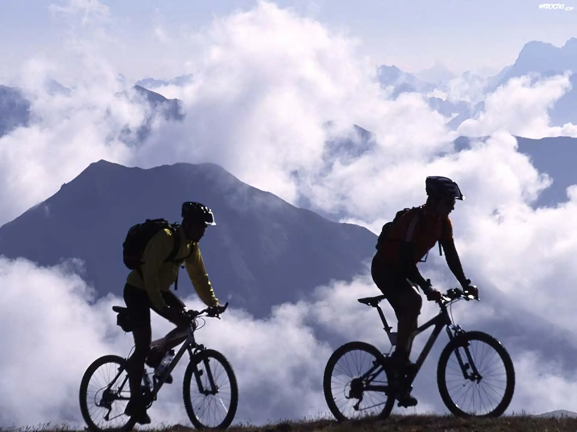 Zdjęcia, Rower,koło , kierownica, kask ,chmury