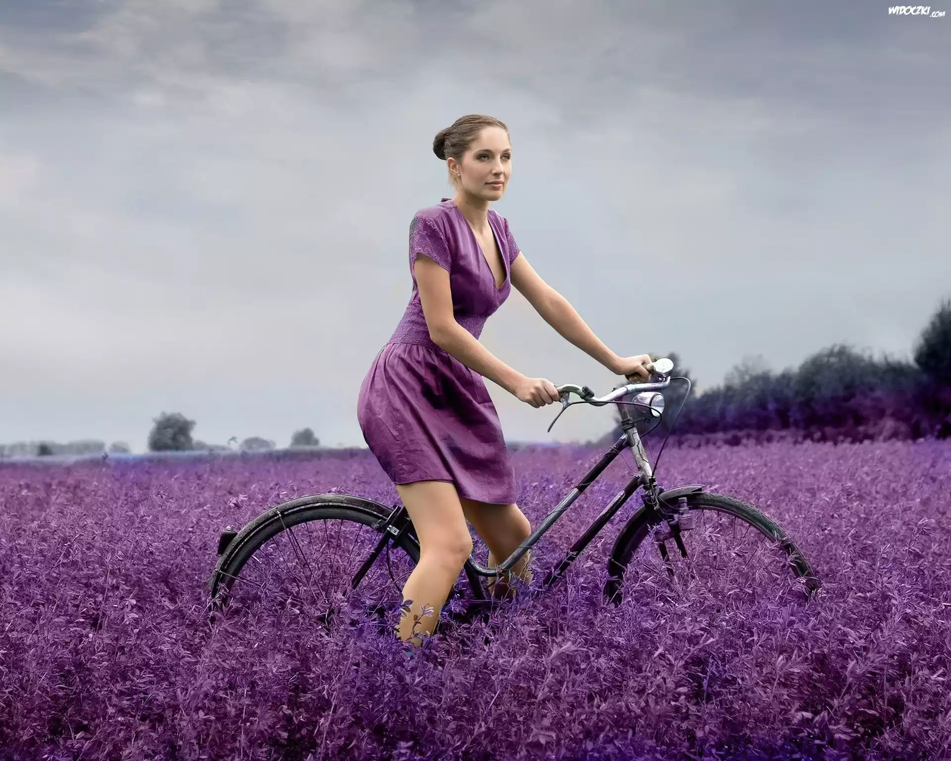 Zdjęcia, Kobieta, Rower, Łąka