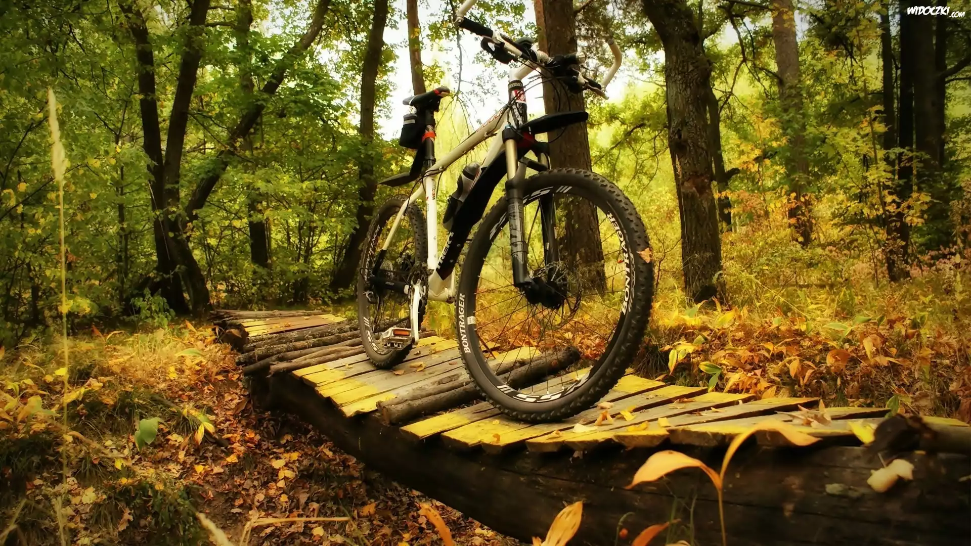 Zdjęcia, Rower, Kładka, Potok, Las, Jesień