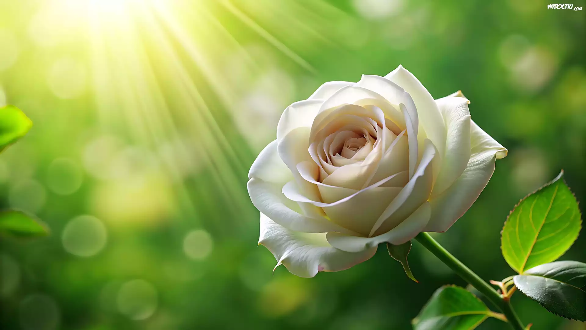 Kremowa, Róża, Promienie słońca, Grafika
